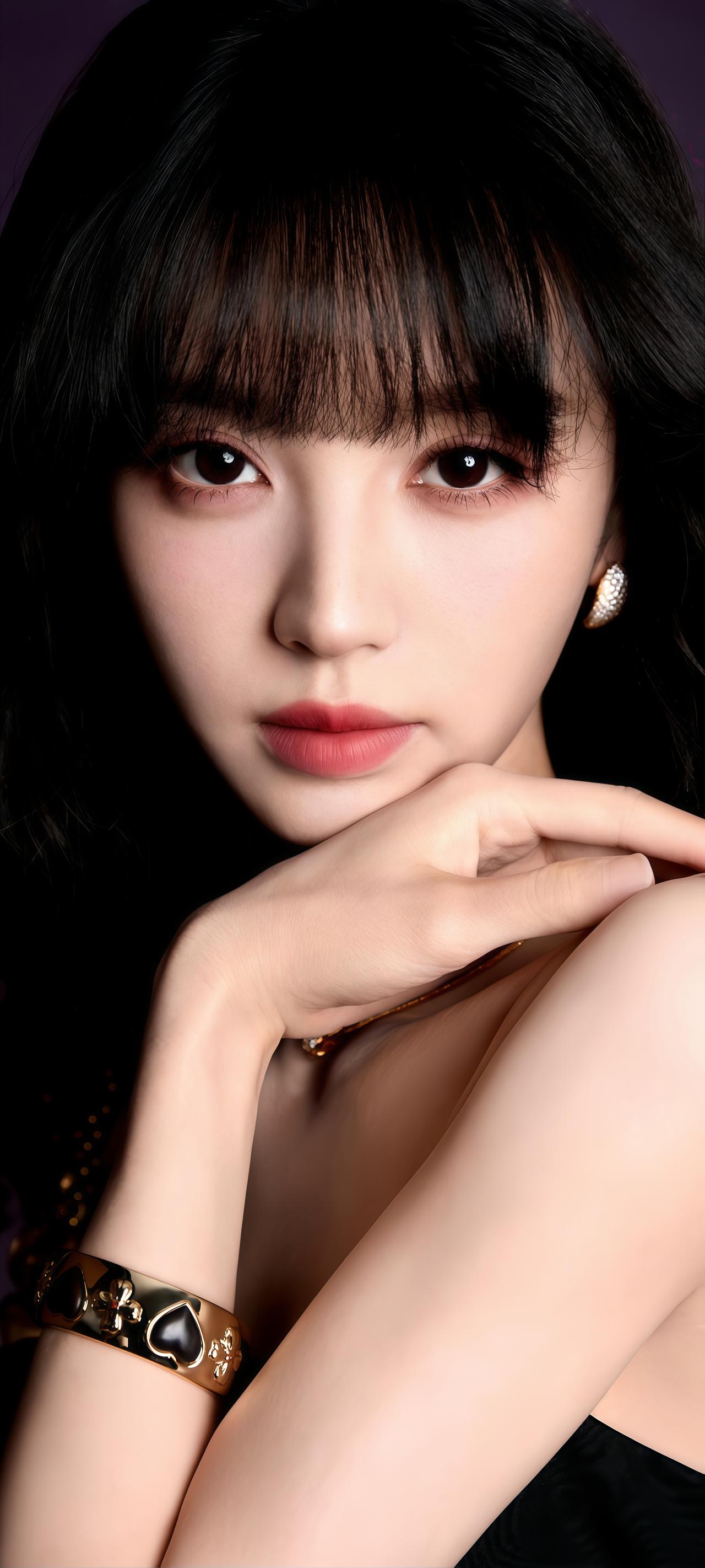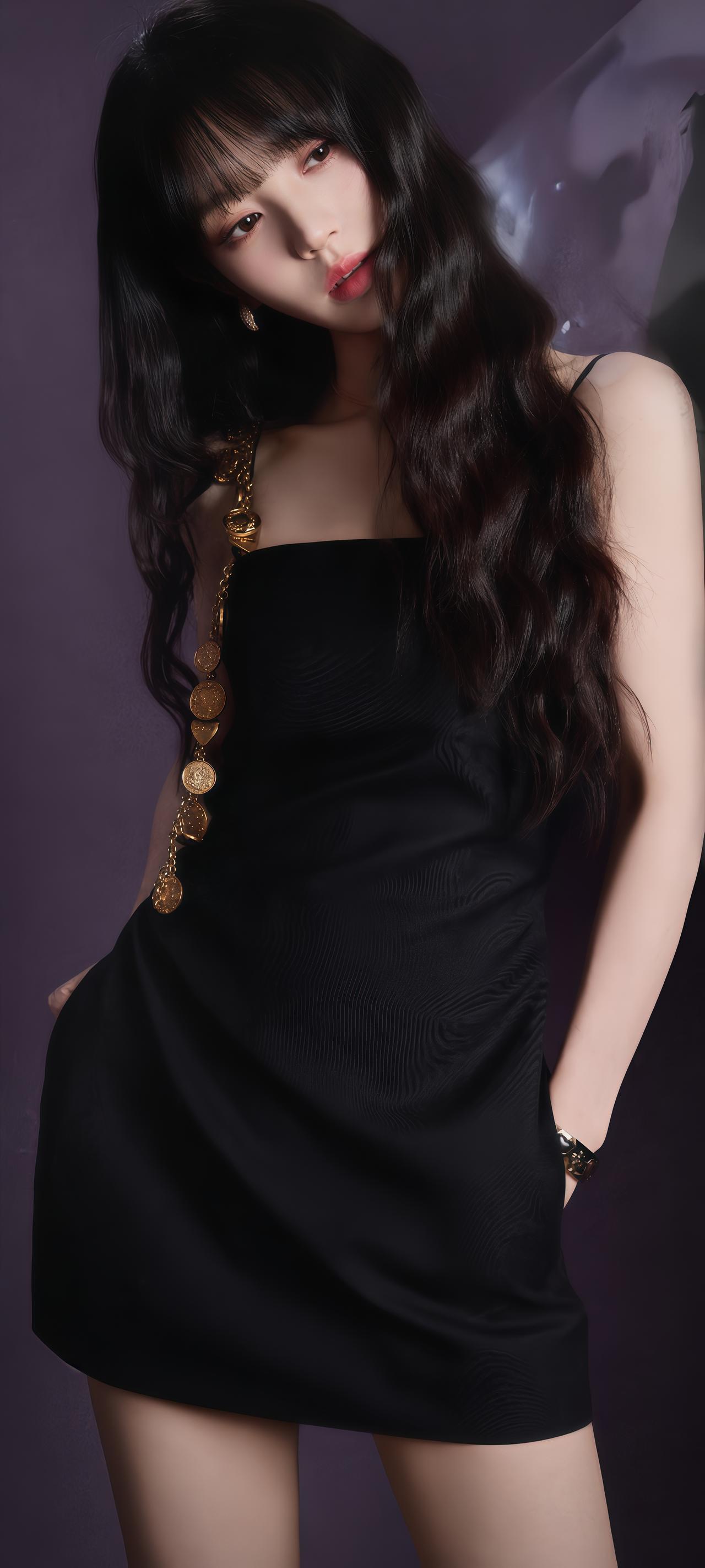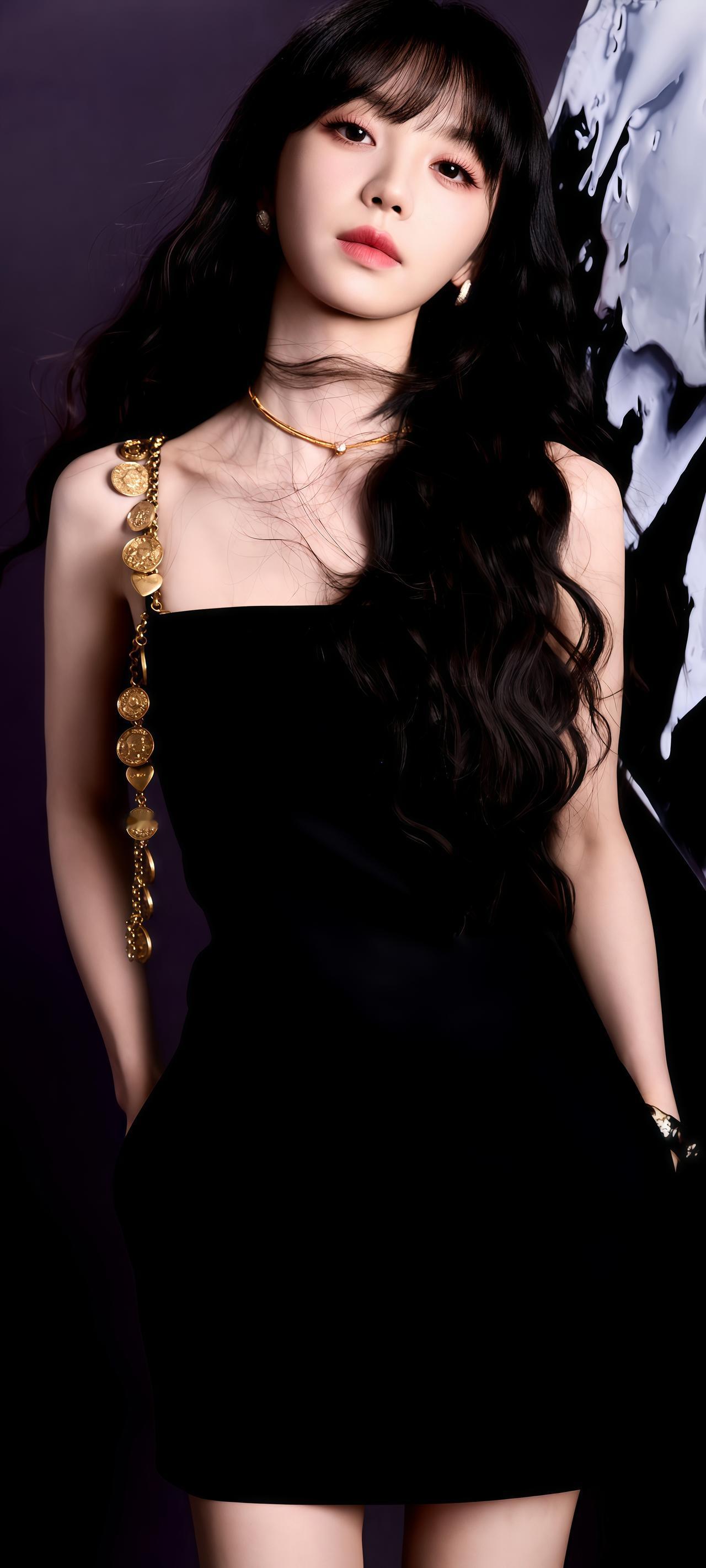 田曦薇,优雅黑裙,自信姿态,紫色背景,时尚大片 明星时尚 田曦薇 颜值天花板 女明星