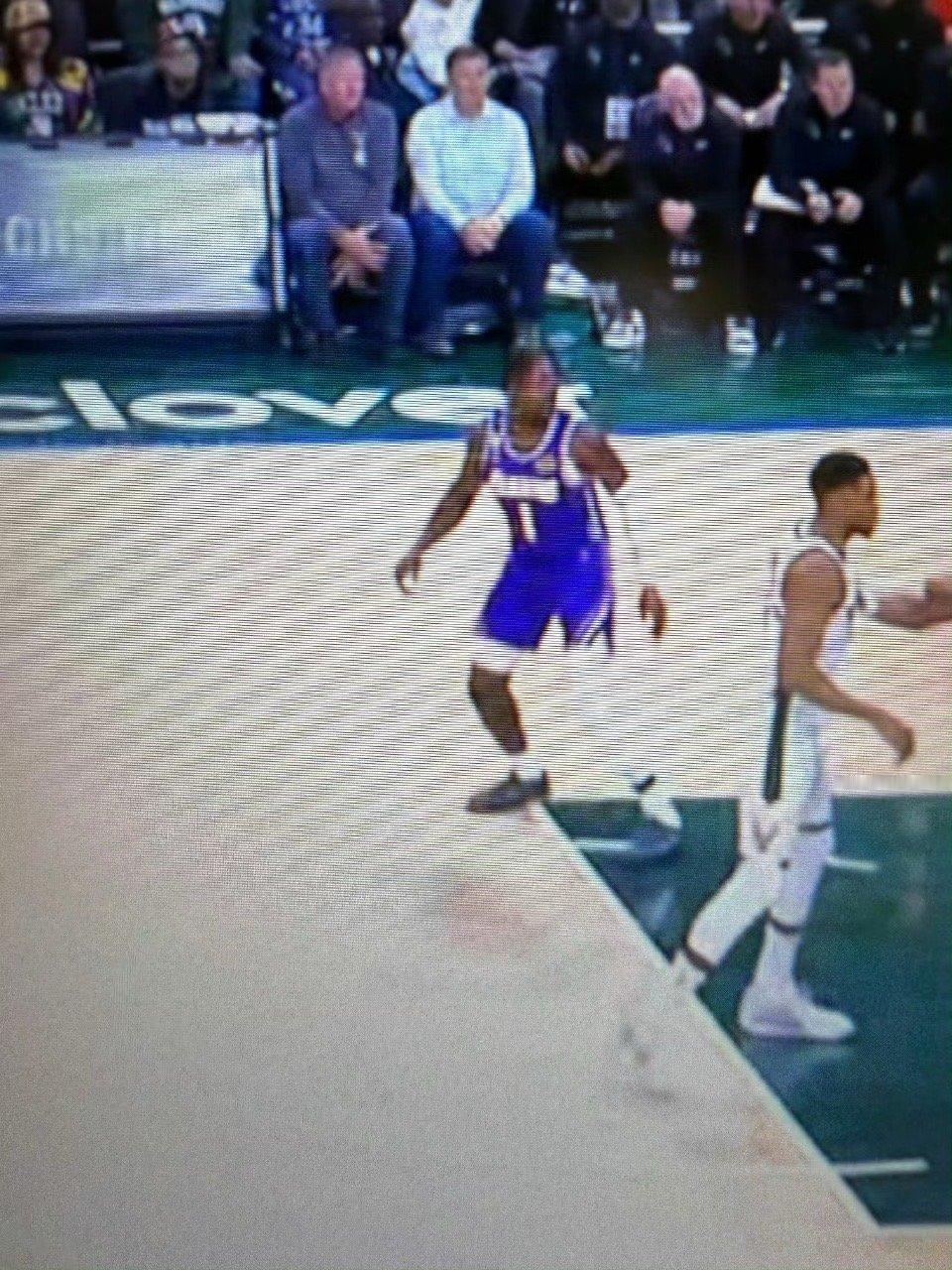 浓眉老师,现在已经胖到有一个半座位宽了……PS:你说你坐独行侠场边,穿了这么个队