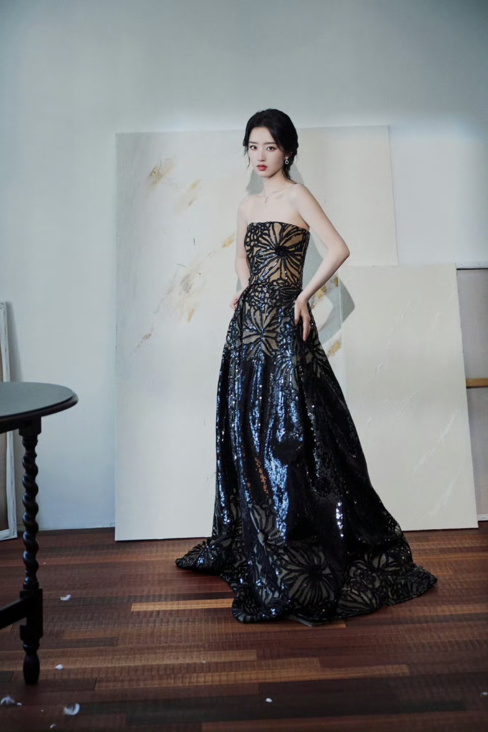 邓恩熙的抹胸镂空亮片裙造型惊艳吸睛,将少女感与精致感完美融合!抹胸设计勾勒出优美肩颈线条,利落又灵动,恰到好处的镂空元素增添了朦胧层次感,不刻意却极具巧思;满缀的亮片如同碎钻散落,在光线下折射出璀璨光芒,行走间流光溢彩,尽显灵动活力。搭配简约发型与清透妆容,既凸显了裙装的闪耀质感,又保留了她本身的清新灵气,甜而不腻、艳而不俗,将年轻女孩的明媚与时尚感诠释得恰到好处,一眼就让人沦陷。