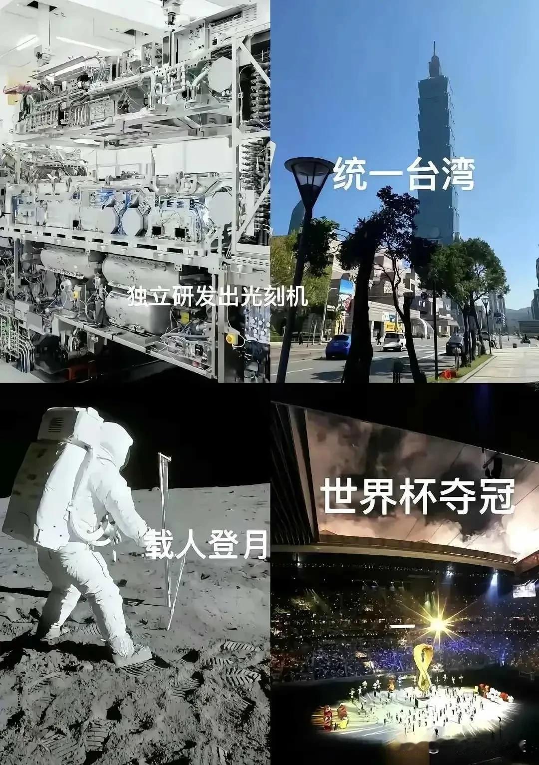 大家仔细看一下这四件大事的难度,在心中客观公正的评价一下,就这四件事难度量级根本不是一个级别, 光刻机,统一大事,载人登月,这三件事虽然都很难,但是都努努力,几年时间,在大家有生之年还是能看到, 至于第四项,只能算是一个遥不可及的梦吧,真的想都不要想了,除非发生人力所能控制的事情出现,其他国家集体放水,才有可能啊! 前三项大事,只要努力奋斗就能做到,要做到第四项,只能面对流星许愿了! 五件大事 十件大事盘点