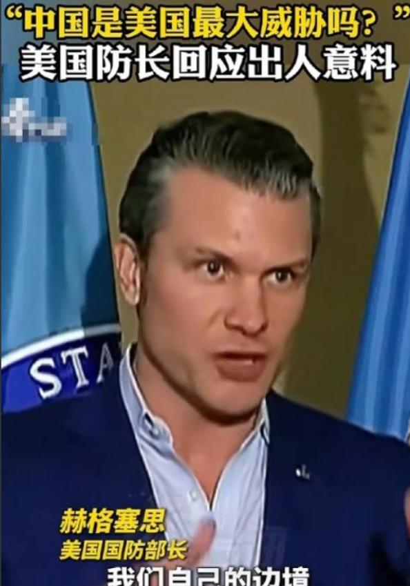 美国战争部长赫格塞斯终于说了一句清醒的话;记者问他,现在美国最大的威胁是不是中国