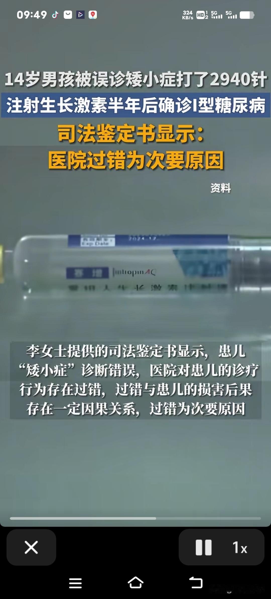 14岁的小男孩被错诊成"矮小症",打了足足2940针后,最后却被查出是糖尿病!孩子妈妈心疼地说,孩子身上全是密密麻麻的针眼,一个个小红包就跟被蜜蜂蛰过似的,这哪是来看病,分明是来遭罪的! 谁能料到,一点身高的事儿,最后竟变成了终身疾病?医院承认是诊断搞错了,但却只愿意承担"次要责任"。每天都得打4针胰岛素,两年算下来快3000针了,这数字看了真让人心里发慌。 更让人难受的是,孩子不光受身体上的罪,还要被别的同学用异样的眼神看着。卫健委说会按判决处罚医生,可这伤害早就没办法挽回了。 现在医疗事故老发生,到底该信谁才好啊?当爸妈的遇到这种事,一定要多跑几家医院再查一遍。您觉得这种医疗纠纷,医院是不是该负全部责任呢?