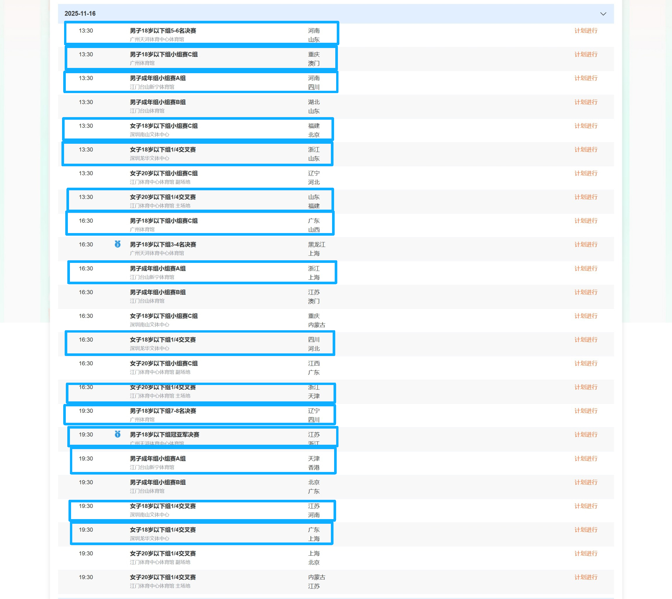 【全运会】11.16排球赛程和转播计划(把有咪咕直播的场次用蓝框框起来了)大家推荐哪些场次,打算看看成年男排沪浙和晚上的U18女排淘汰赛(上海和江苏U18)