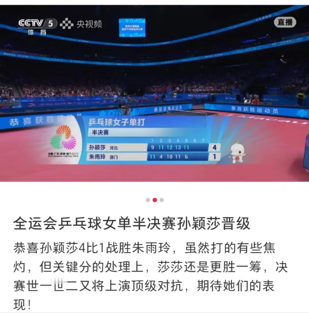 新老一姐对决,孙颖莎战胜朱雨玲,挺进决赛 孙颖莎也是牛起来了, 不仅能让全运会