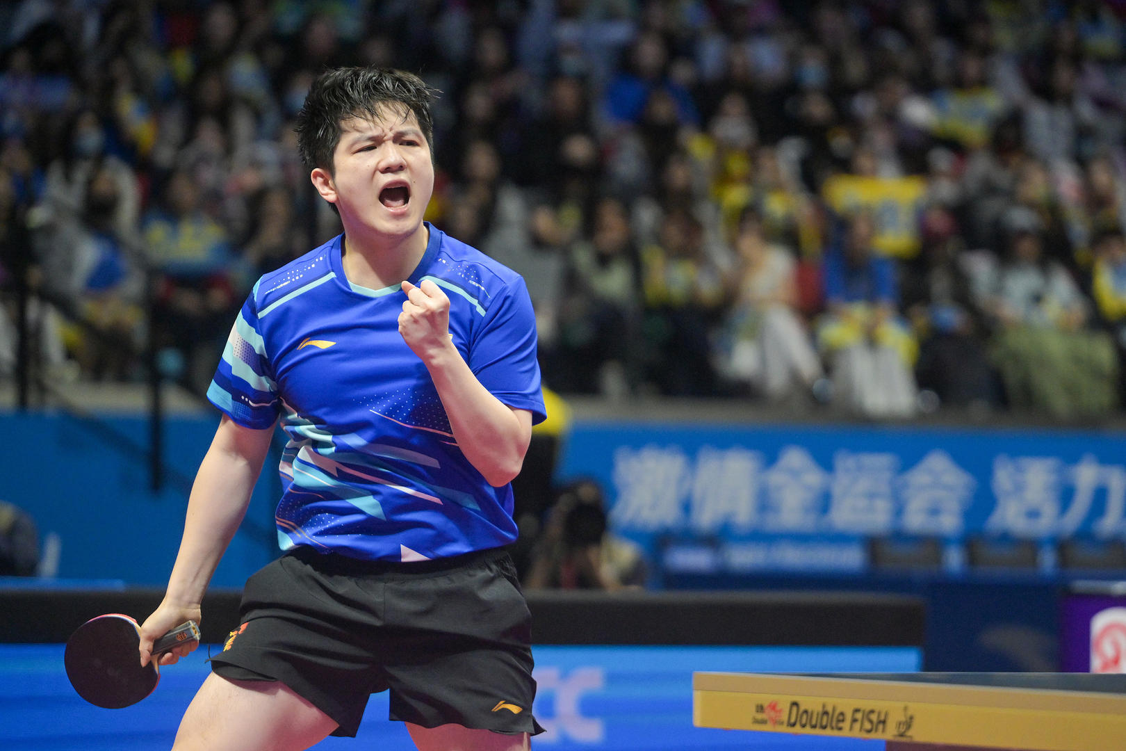 【】十五运乒乓球男单决赛,樊振东与林诗栋的第一局比赛中,樊振东在4:9落后的情况