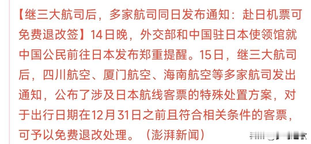意图很明显,先掐了日本的一部分经济再说 由于日本那女的做出了挑衅行为,中国多家航司共同提醒乘客,去日本有危险,去旅游更是要谨慎。 数据显示,2025年上半年中国赴日游客消费达5160亿日元(约247亿人民币),在日本该季度外国游客总消费中占比20.4%。可以说,日本游客最多国家的来源就是中国。 现在打仗都是打的经济,只要经济一塌方仗不用打,就从内部就可以瓦解敌人,这就是现在战争的套路。