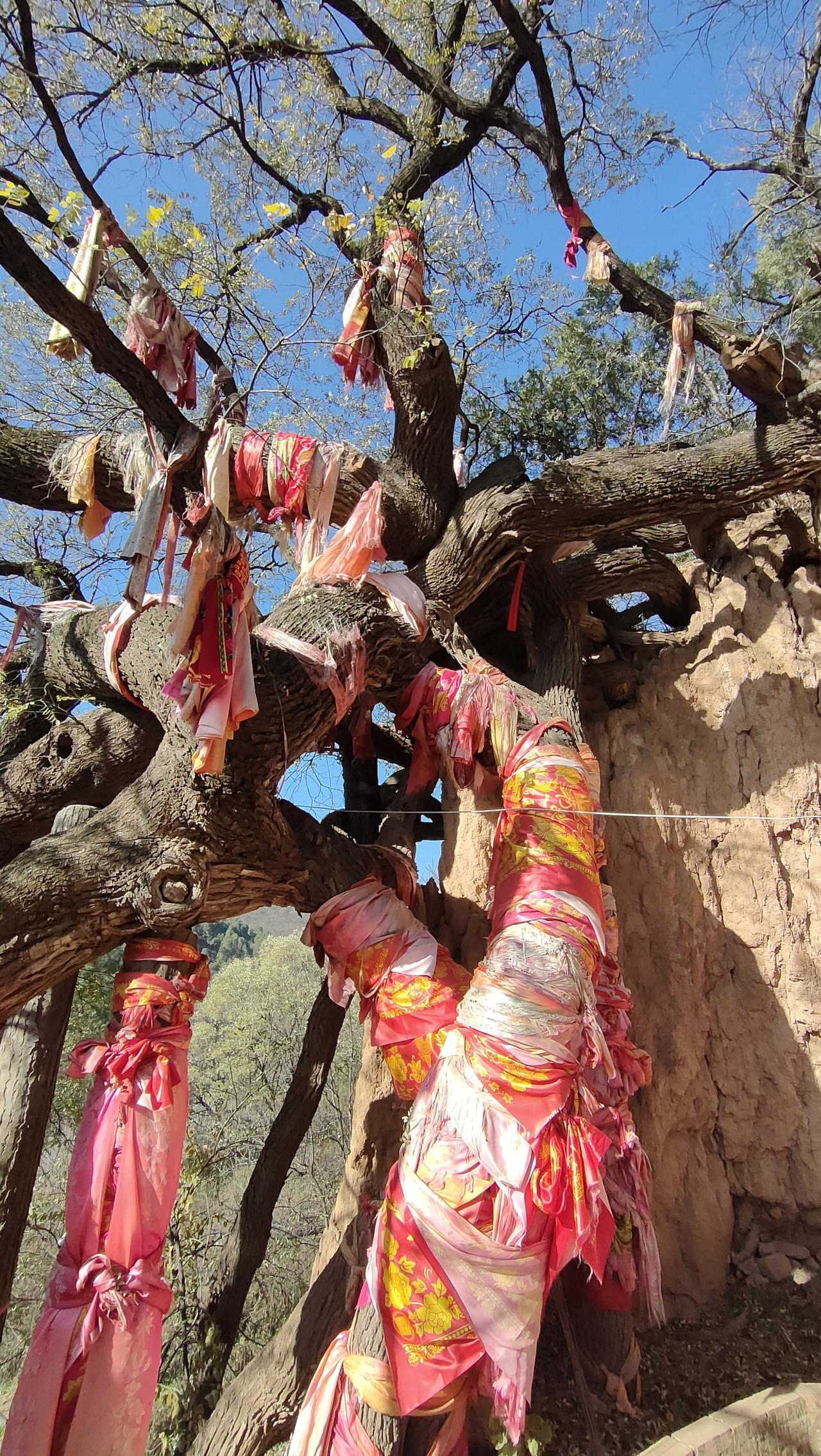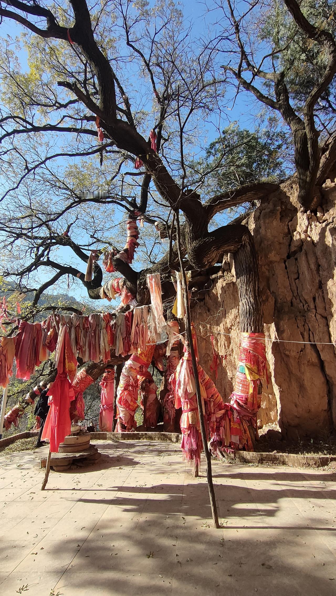 合阳神树。在合阳与韩城交界的山村里,有一株神树,树龄超过千年,当地人将其当作神灵供奉。这株古槐树应该是长在悬崖之上,垂落到地面的树枝又产生新的根系,类似于南方的榕树,所以给人感觉像是几株槐树长在一起。可惜太过偏僻,香火受影响,但并没有影响闲逛心情,幽而静,适合我。