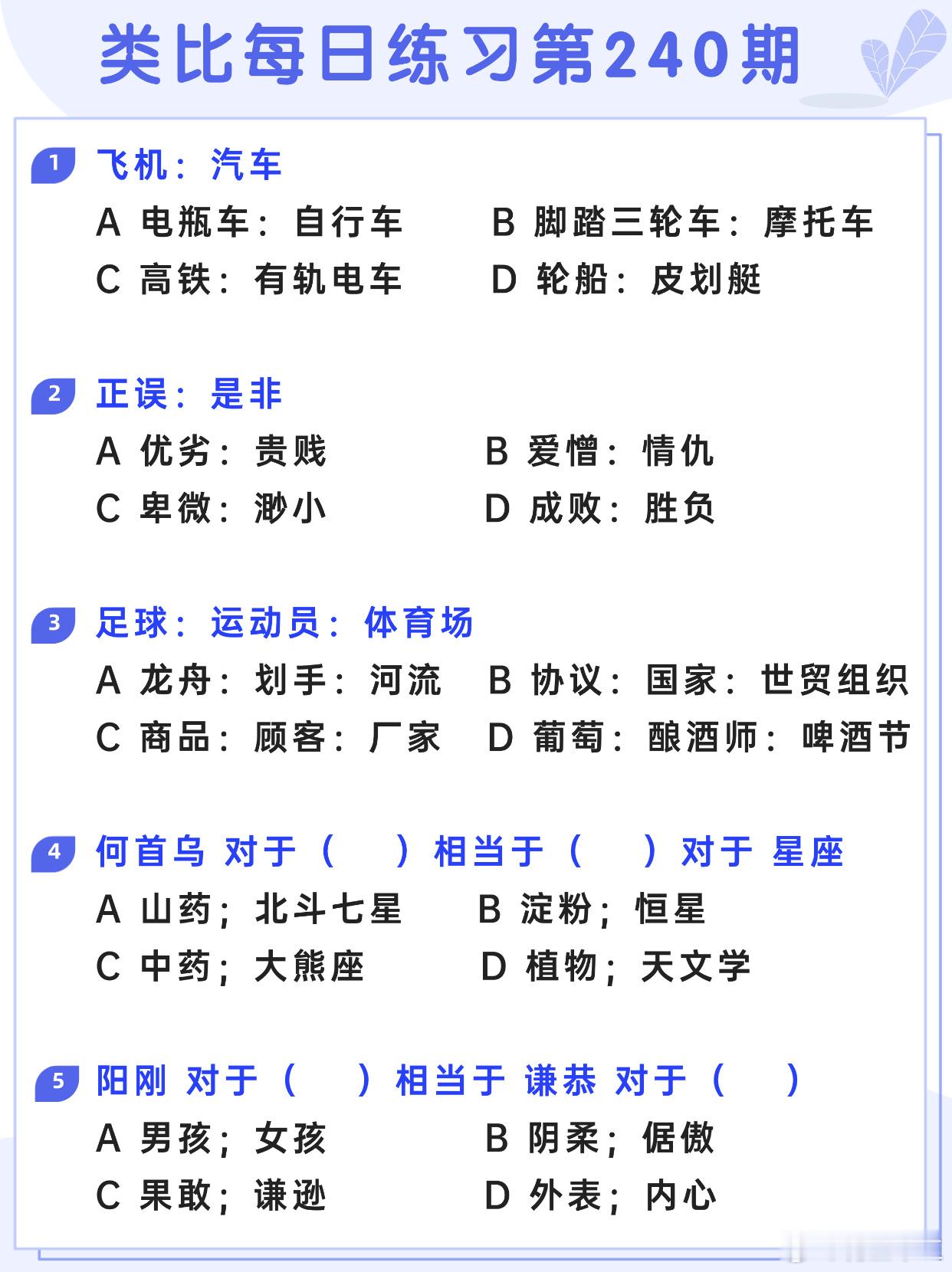 图推类比每日练习第240期图推难度:☆☆类比难度:☆☆