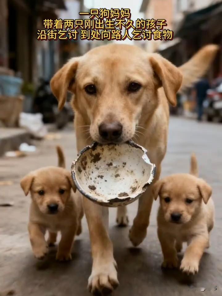 太可怜了!这天一位小姐姐去逛街,结果走到一条小路上的时候,看到令人伤感的一幕,一只狗妈妈嘴里叼着一个破铁碗,带着两只刚出生不久的孩子,沿街到处向人乞讨食物,估计已经饿了很久,狗妈妈的状态并不是很好。 而那些商家都是驱赶它们,也没有人给它们投喂食物,都觉得它们影响自己的生意,善良的小姐姐看着这一幕顿时心生怜悯,于是决定救助收养它们。她先把它们送去宠物医院检查身体并打了疫苗,之后就给它们买了狗窝等生活用品,就这样把它们安顿在家里。相信有小姐姐的照顾之后,它们也会过上安稳的好日子。