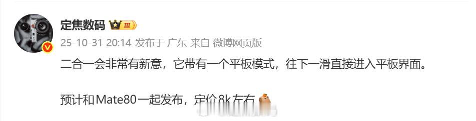 其他博主已经发了MateBook E,散热器+柔光屏+14.2英寸了... 结合我之前说过的,下一滑直接进入平板界面。这么一来,平板和电脑融为一体了。算是14英寸平板真电脑...