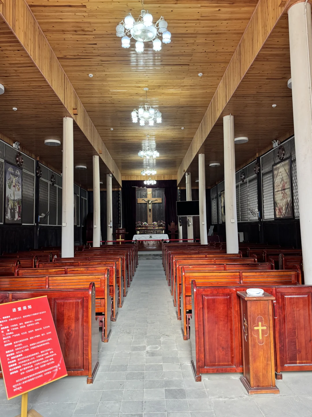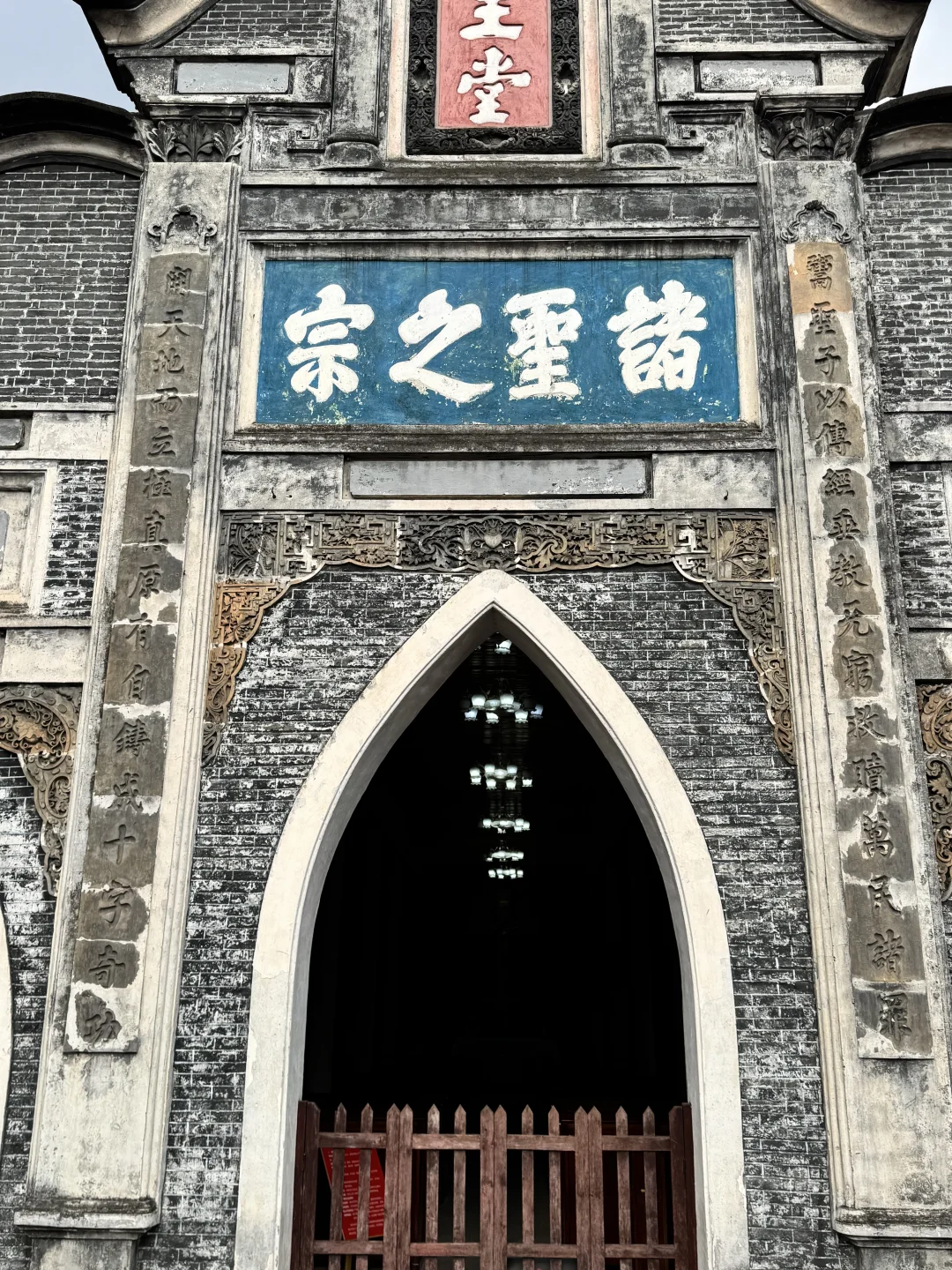 1. 内联:“鬻圣子以传经,垂教无穷,救赎万民诸罪;开天地而立极,真原有自,铸成十字奇功。” 这副对联核心围绕天主教教义,前半句讲圣子传经布道、救赎世人的宗教使命,后半句则赞颂天主教创世立极的神圣功绩,传递出宗教的神圣性与教化意义。