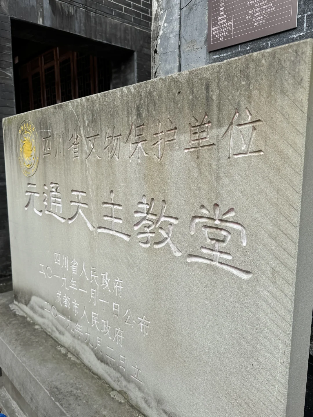 在四川成都周边的古镇元通古镇的天主堂,教堂门侧刻有两副楷体阴雕对联,还采用元通土陶工艺制作,尽显中西文化融合的特色,具体内容及内涵如下: