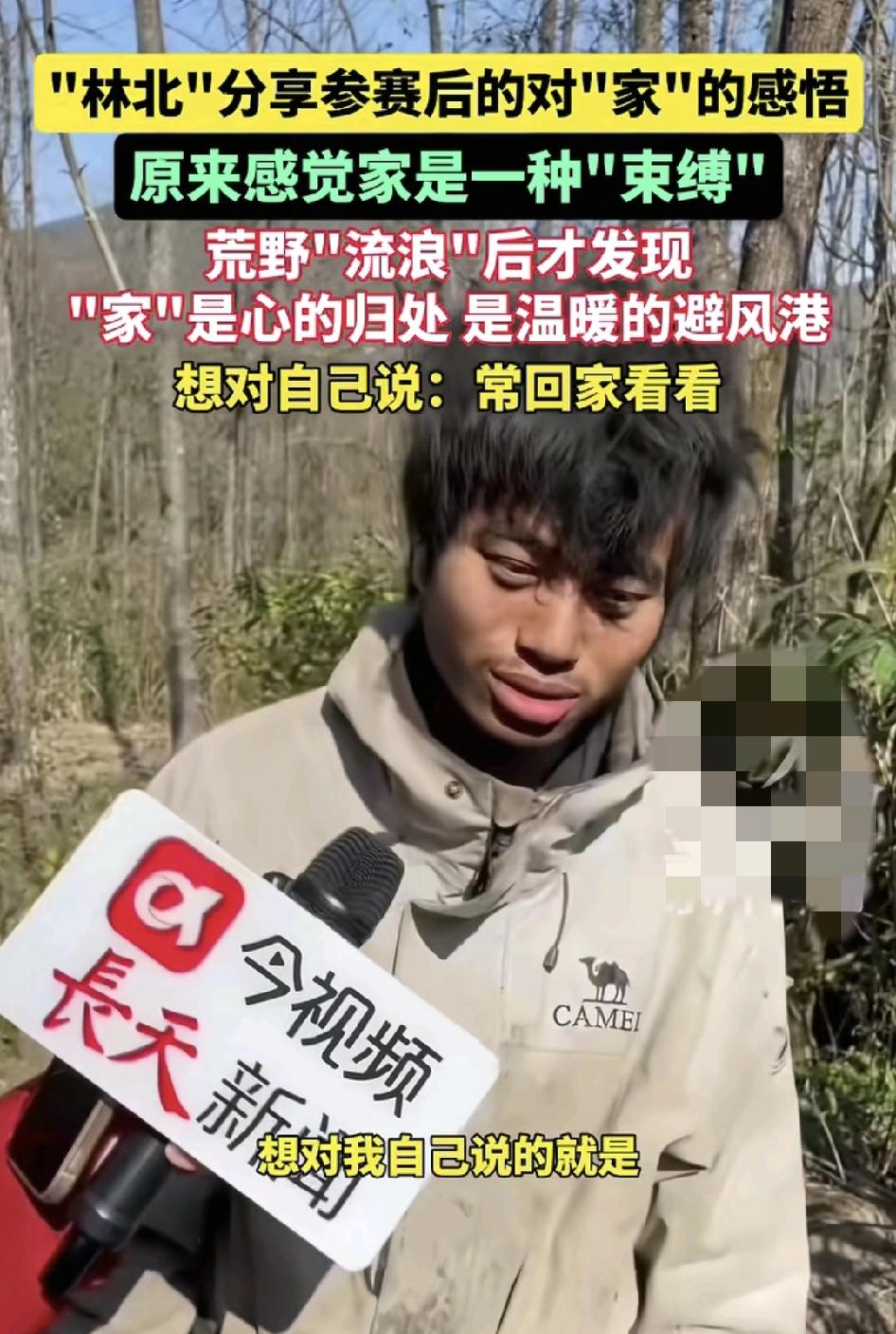 荒野求生野外探险活动,其中一位参赛选手“林北”,在接受访问时表示通过这一次等体验他对家的意义有了新的启发,很多人觉得待在家里会被束缚,时间长了会觉得烦躁,不安,但是当在野外流浪的时候,就会真正的体会到家,是一种归宿,是真正的避风港。他这一段话感动了无数的网友,或者这一次的活动,不仅仅是为了考验大家的生存技能,更是对人生,对家庭和个人的深刻理解,老话常说“在家千日好,出门事事难”,没有真正的体会到颠簸流离,患者都理解不了这句话。