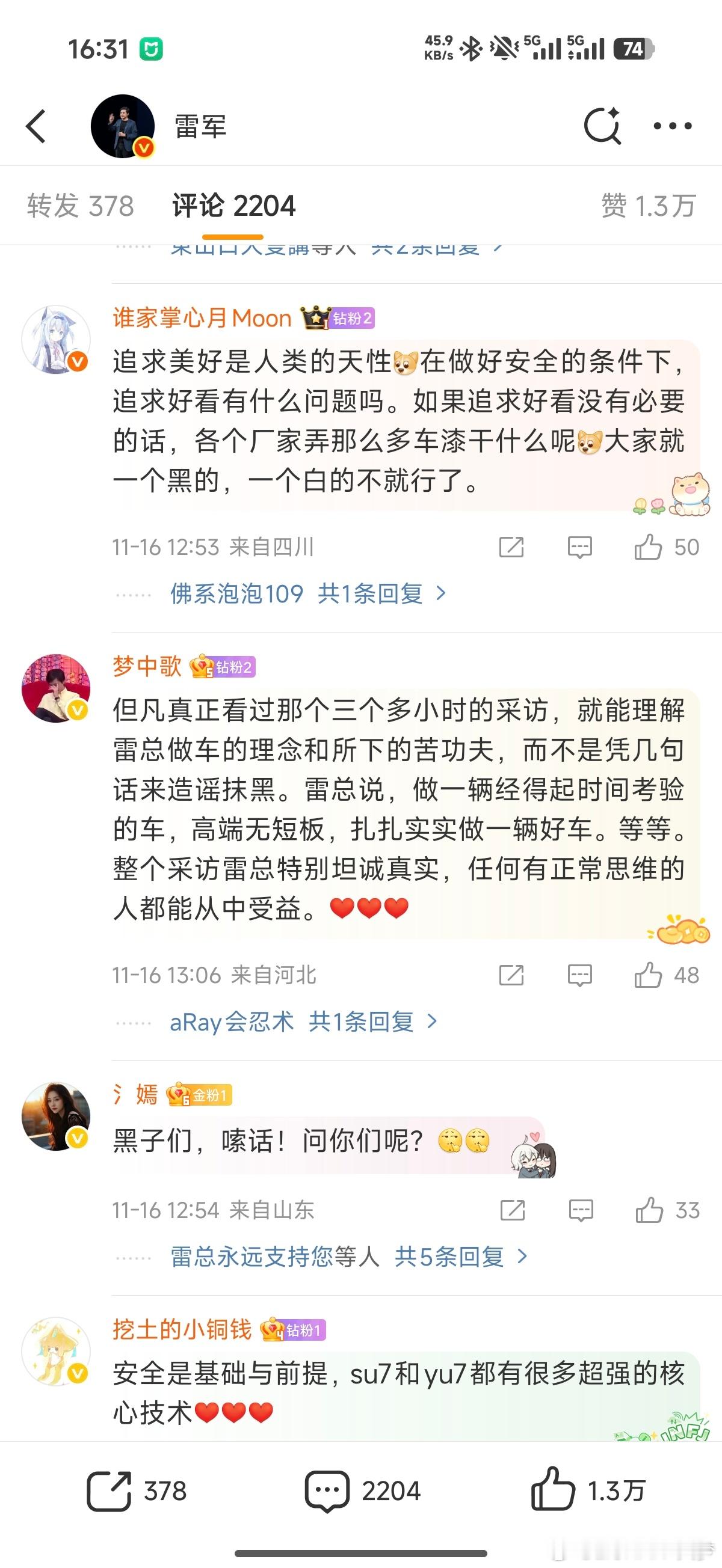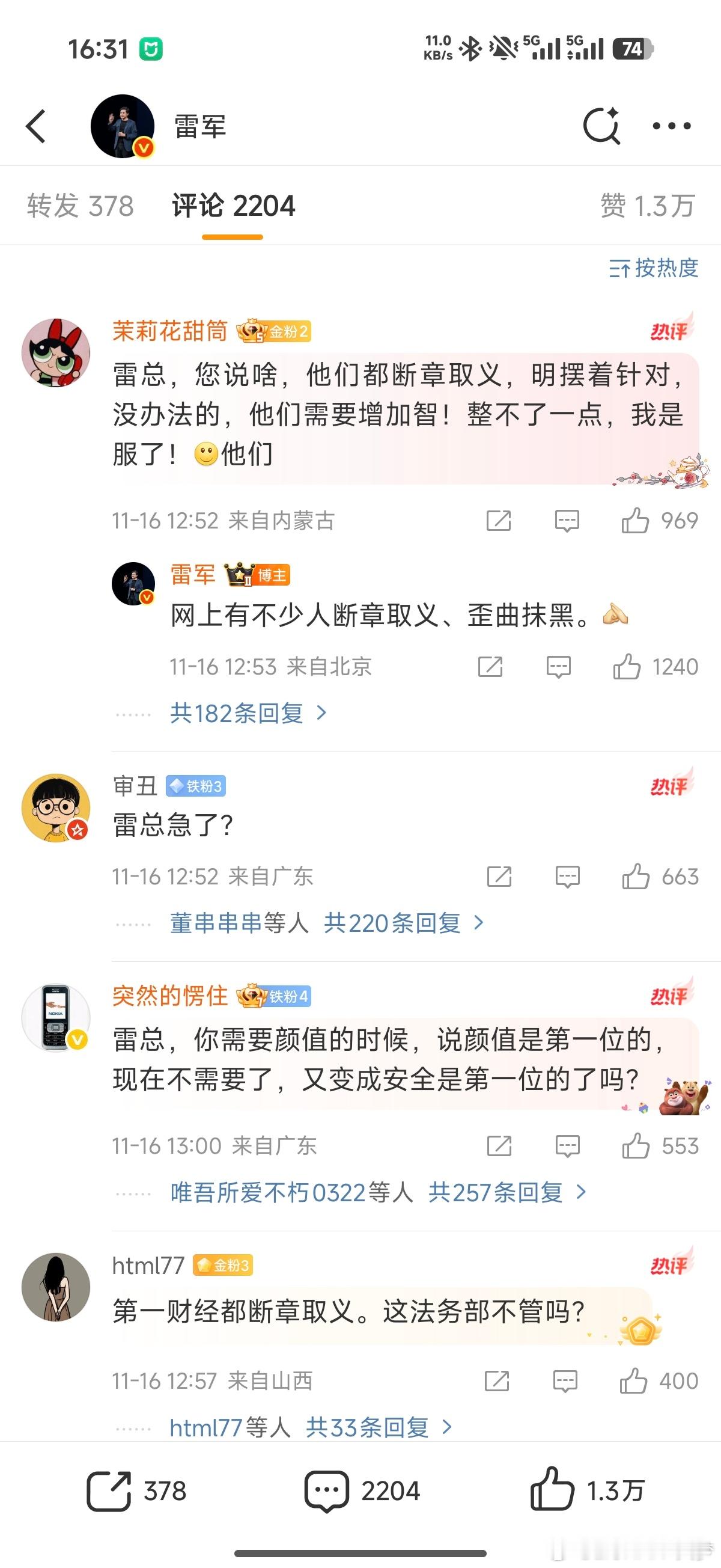 看了一下雷总评论区,很多米粉都出来了,之前很多媒体的断章取义看不下去另一方面也是很少看到雷总连续发这么多条微博,也算是对之前网络节奏回应,算是官方的态度实际上小米在过去十五年的时间里也遭受了非常多的饱和式攻击,即便如此也从未向黑媒体、断章取义低头过这次我相信也是一样,所有某些媒体借着这个由头来暗示小米要多给黑媒体充值就显得非常可笑。