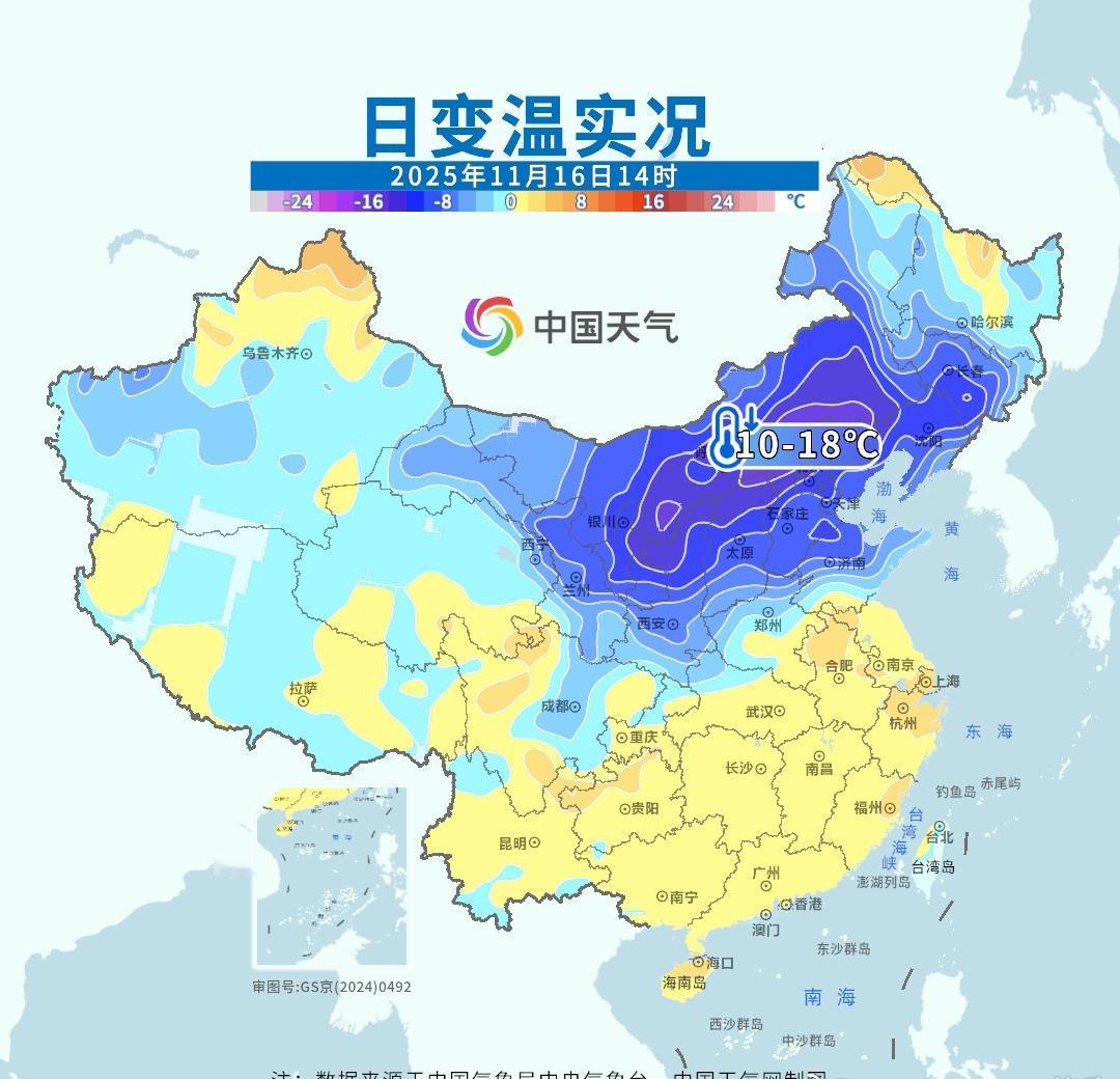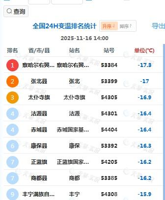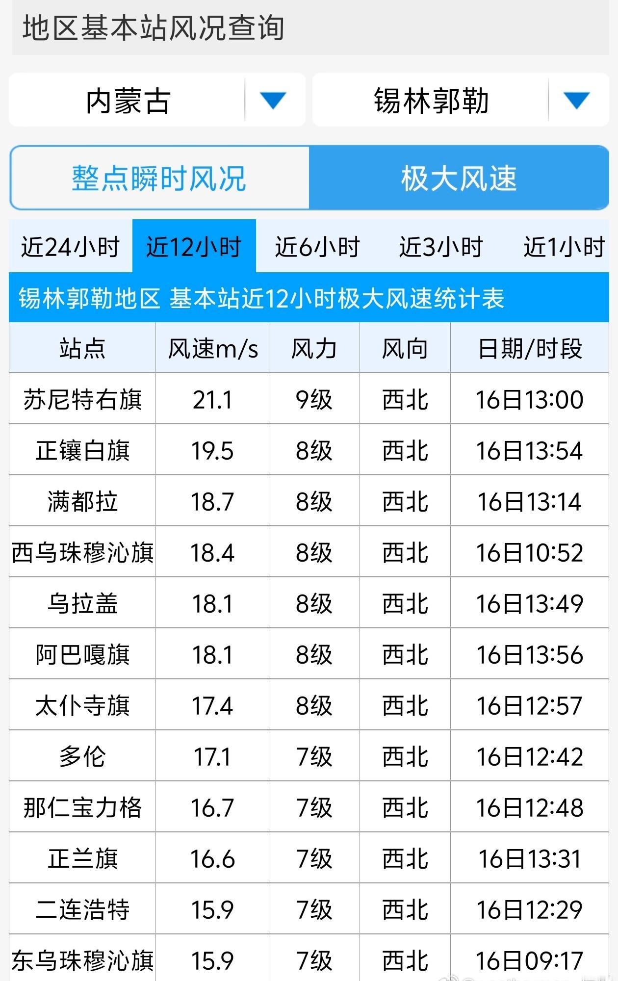 【大风降温】今天受到寒潮影响,北方多地出现大风降温。内蒙古巴林左旗出现10级阵风,巴林右旗、克什克腾旗、岗子、苏尼特左旗、河北涿鹿、围场、北京房山出现9级阵风。今天在内蒙古和河北交界一带降温超16℃,内蒙古察哈尔右翼后旗降17.3℃,河北张北降 17℃为各自省区14时降温最强站点。真是速冻。