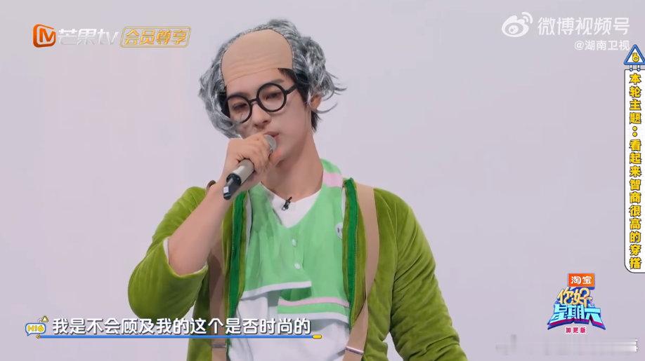 颜安带着他的欢乐时尚来了,紧身背带裤搭秃顶头套,诠释“聪明绝顶”。他解释头秃才聪明,这有趣的灵魂太让人爱!