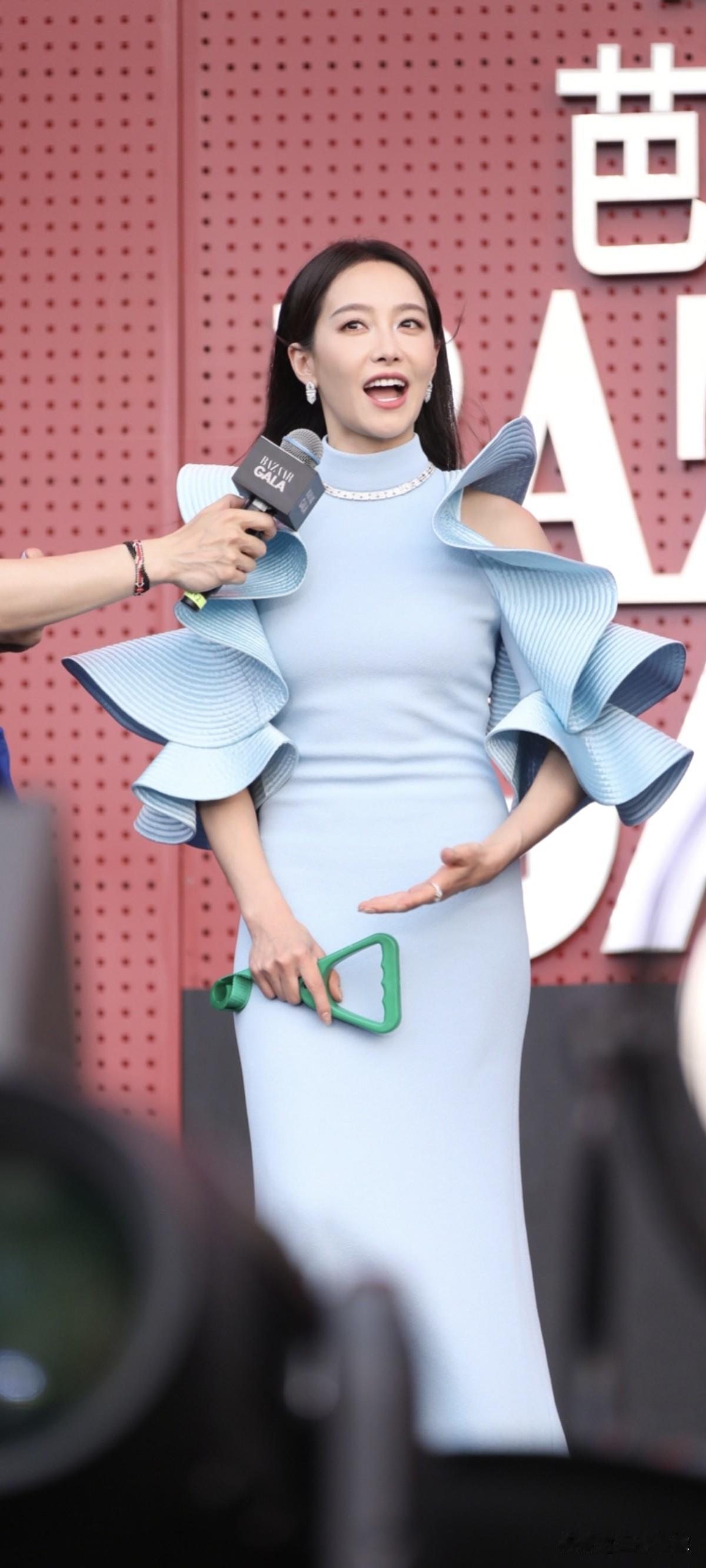 宋茜芭莎之夜红毯生图,蓝色好清新,生图都美成这个样子