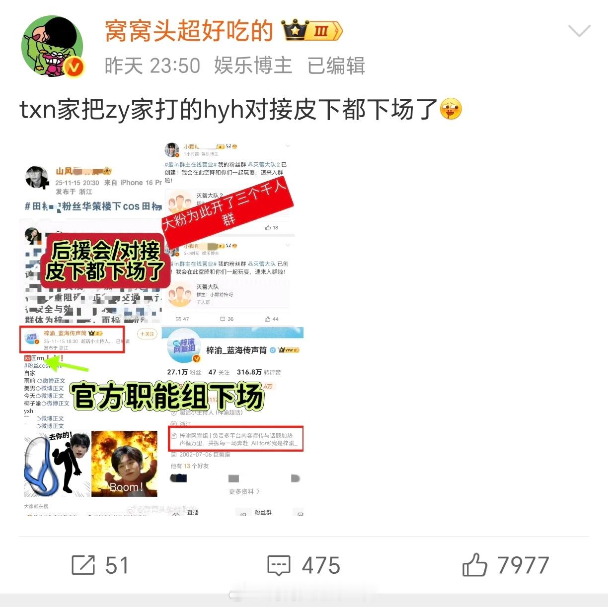 梓渝官方后援会和对接皮下都下场是不是代表最少两点:被打的没招儿了,官方授意下场。