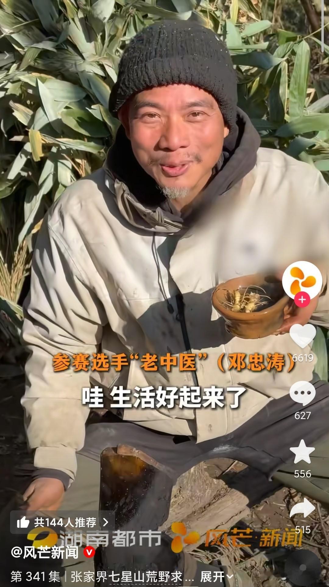 最开心的是,药材纯野生不用花钱, 54号邓忠涛,不愧是“老中医”吃的红光满面。 他是这里面年纪最大的,把庇护所火全部都解决完了之后,躺久了不利于气血流动,就开始制作陶器,挺懂生活的,陶冶情操。 他没有其他13名选手热度高,一直活在自己的圈子里面,家里是中医世家,把求生变成生活,拿野生黄精煮水喝,老中医进荒野就跟逛菜园子一样,认识的都是宝,不认识的都是草,而且最重要的是他能调理身体,别人一个个硬熬,活的跟个鬼一样,就他越活越滋润了。