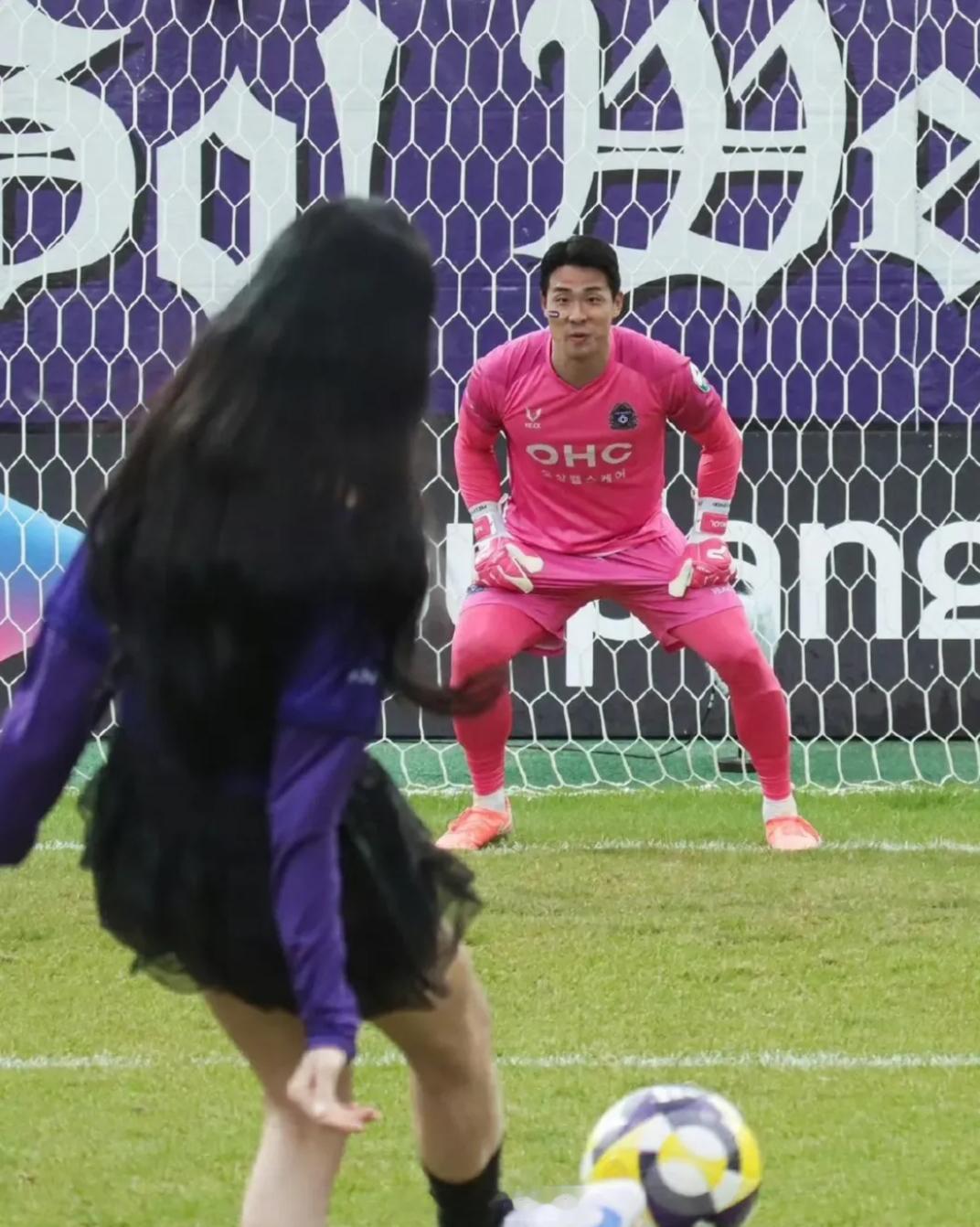 Apink吴夏荣这个射门姿势,一看就是有人给开小灶了,学的挺快。