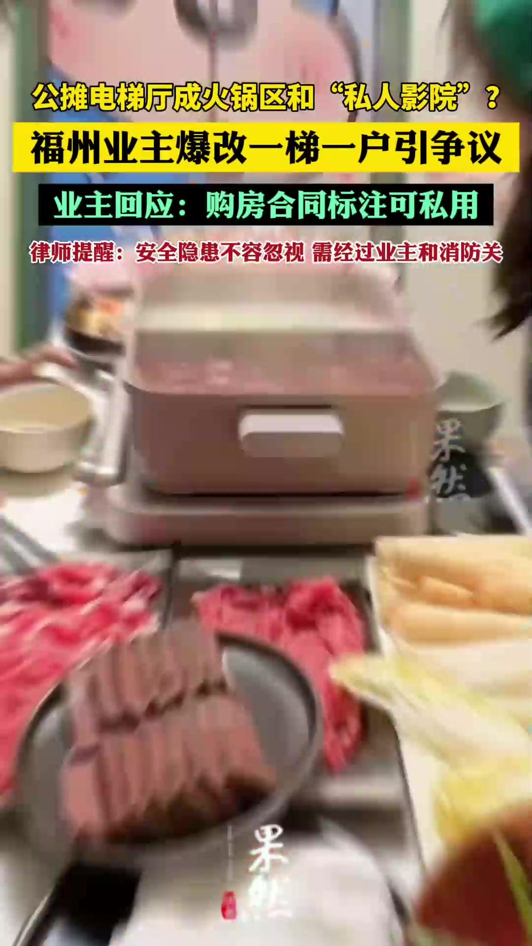 女子爆改电梯厅涮火锅:4万买的“私人空间”,藏着所有人的安全雷区 “一梯一户”竟能解锁“私人会所”?福州博主“小丁妹妹”的装修vlog刷爆全网:20多平米的公用电梯厅,被她贴墙纸、装投影、摆桌椅,变成了能涮火锅、看电影的休闲区,闺蜜围坐的画面让不少网友直呼“太会享受”。可这份羡煞旁人的“幸福感”,却在法律和安全的红线边缘疯狂试探。 小丁说得理直气壮:购房时销售和物业都承诺电梯厅可私用,合同有标注,自己还补交了4万多面积差额,甚至邻居们也纷纷效仿,改成洗衣房、宠物间的不在少数。在她看来,这只是对“自家延伸空间”的合理利用,且家具没挡逃生通道,通风也好,根本不存在安全问题。 但法律可不认这份“口头约定”。《民法典》早就明确,电梯厅属于公摊面积,归全体业主共同所有,就算合同标注“可私用”,也不能改变其公共属性 。更关键的是,《消防法》严禁占用疏散通道,而电梯厅本就是火灾等紧急情况时的“生命通道”,加装的柜子、墙纸等可燃物,一旦遇上明火,后果不堪设想。 别觉得“出事概率小”,这些安全隐患就藏在看似温馨的改造里:涮火锅的明火、投影仪的电路,稍有不慎就可能引发火灾;改造压缩了通行空间,真发生意外,不仅住户逃不快,救援人员也难快速进场;墙纸、木质家具都是易燃材质,火势蔓延速度会翻倍,烟雾还难以及时排出,很容易造成人员窒息。 追求美好生活无可厚非,但不能以牺牲公共安全为代价。公摊面积不是“私人领地”,哪怕补缴了费用、得到了口头承诺,也不能突破法律和安全的底线。真正的生活智慧,是在规则之内提升幸福感,而不是把大家的“生命通道”变成自己的“休闲区”。 如果每个业主都跟风圈占公摊,小区的公共秩序早就乱了套。你身边有过公摊私用的情况吗?对于这种“爆改电梯厅”的行为,你觉得该整改还是默许?欢迎在评论区说说你的看法!