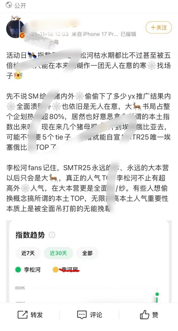 怎么看李松河大粉拿着微指数朝李河民,结果自家没吴弦俊高
