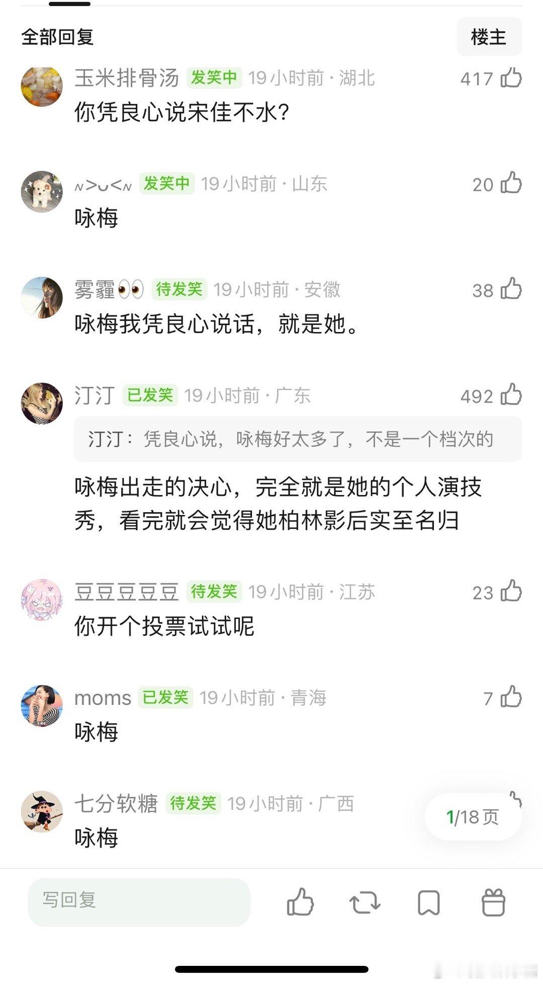 宋佳获奖时,咏梅那个表情我反复看了好几遍。镜头扫过去,她嘴角是弯的,眼睛却没