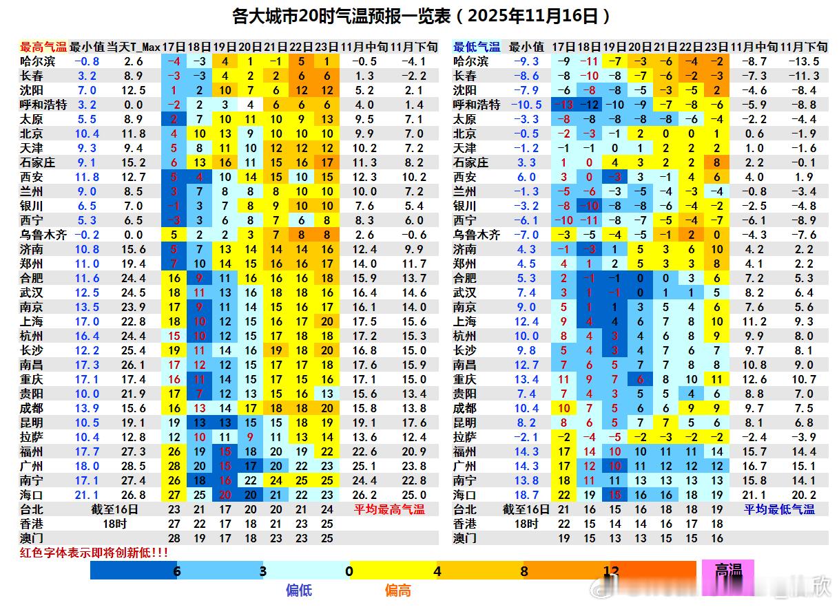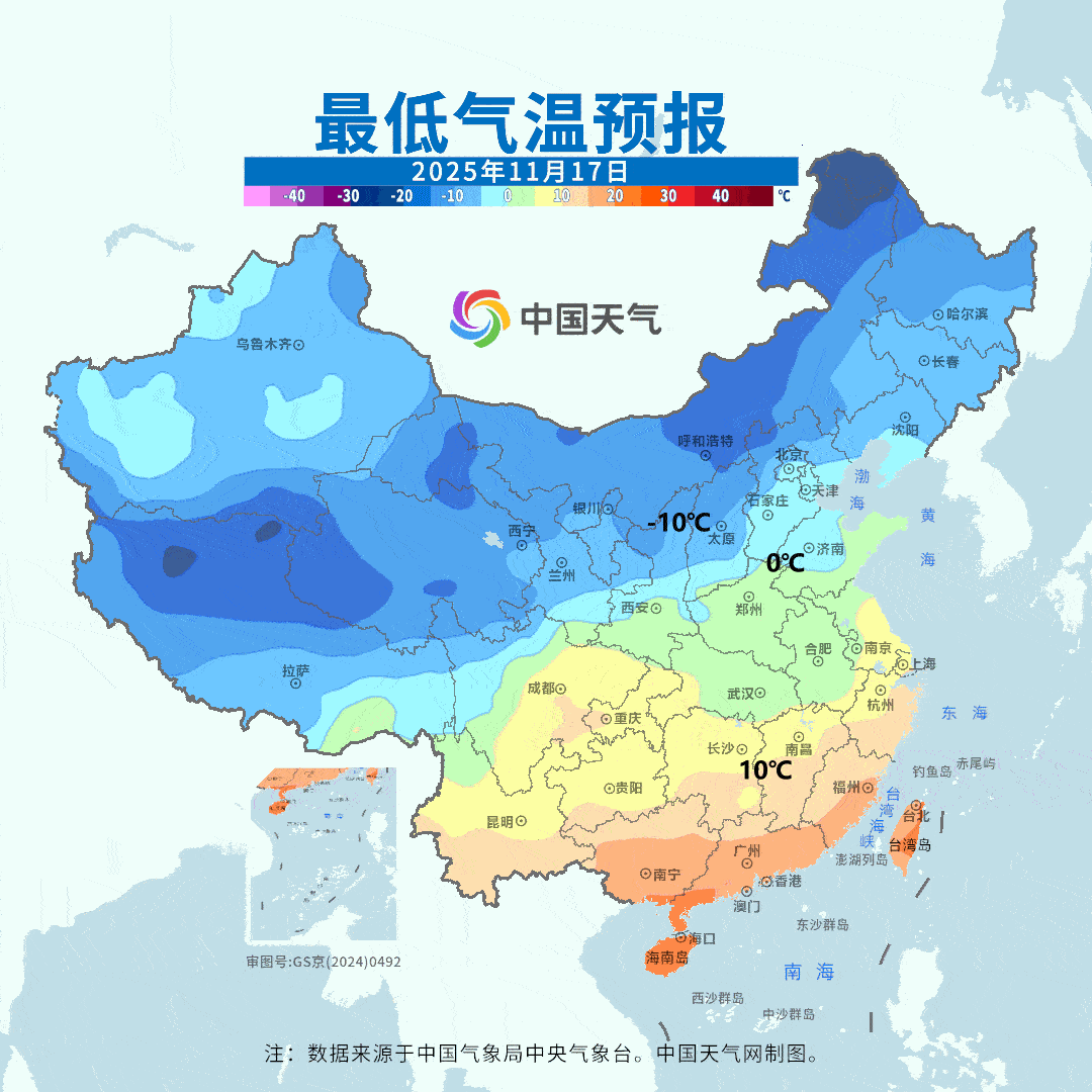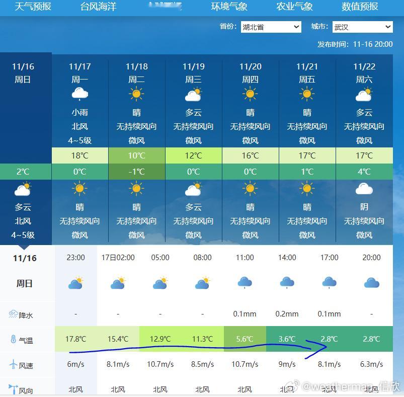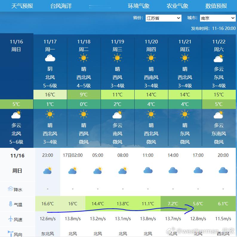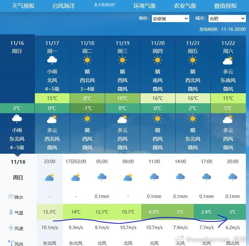 未来寒潮继续南下,这轮寒潮甚至最南可达越南、老挝、泰国。在11月的寒潮能如此深入南下,很少见。这也可以反推,未来2天,我国南方的降温会非常剧烈。明天湖北安徽江苏一带,比如武汉、合肥、南京可能出现气温倒降,明天下午气温个位数,比今夜还低,穿衣请参考最低气温。这次降温可能使得长江中下游多地,拿到冬季体感卡。但由于寒潮来去匆匆,降温快,后面寒潮影响结束,升温也会比较快,因此长江中下游能否进入气象标准的冬天,还要继续观察。明天下午-夜间,寒潮前锋也会进入华南,华南的核心降温在明晚-后天。未来2-3天,中东部大部地区气温将创立秋后新低。