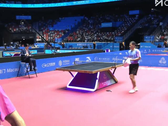 梁俨苧摔拍,球拍被对手捡起来放到桌上! 河北队梁靖崑砍2分赢下比赛。 梁俨苧第一局被郑培锋逆转之后把球拍摔了, 拍子掉到地上, 自己也不捡了,头也没回。 郑培锋帮他捡起来放到了球桌上,后来裁判对梁俨苧出示了黄牌 。 河北队今天是梁靖崑拖着受伤的腿,打了两盘, 赢下了比赛。
