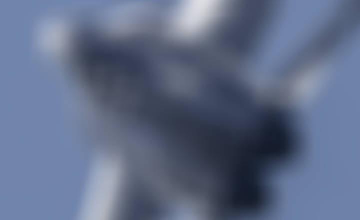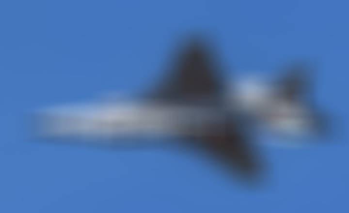 战机欣赏:分享一组F-22战斗机照片。该机正在进行飞行表演,机腹弹仓和侧弹仓都已