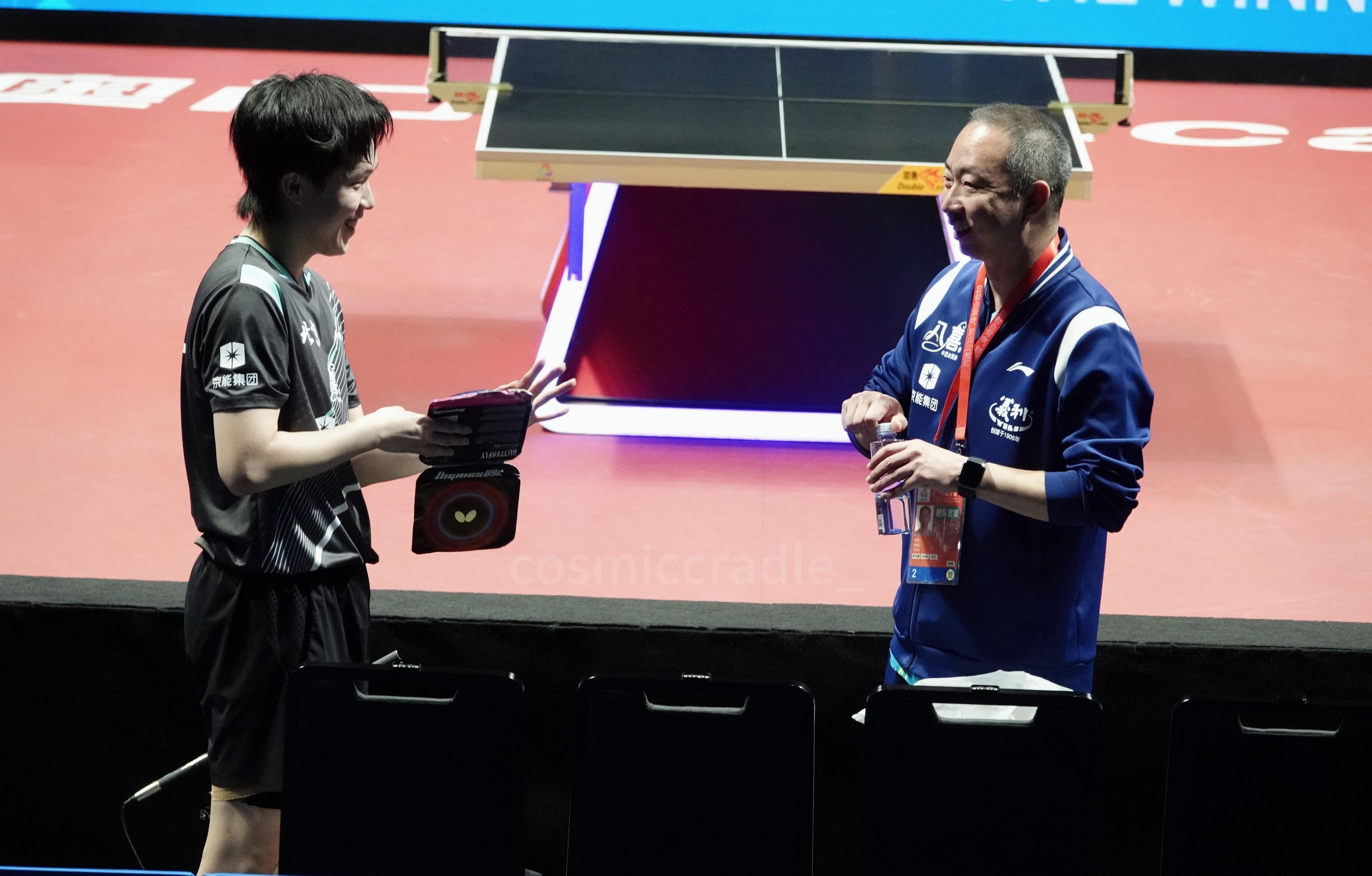 分享两个超级“惊喜”的瞬间:单打对阵lgy第三局5-10落后时我举着相机看到楚钦