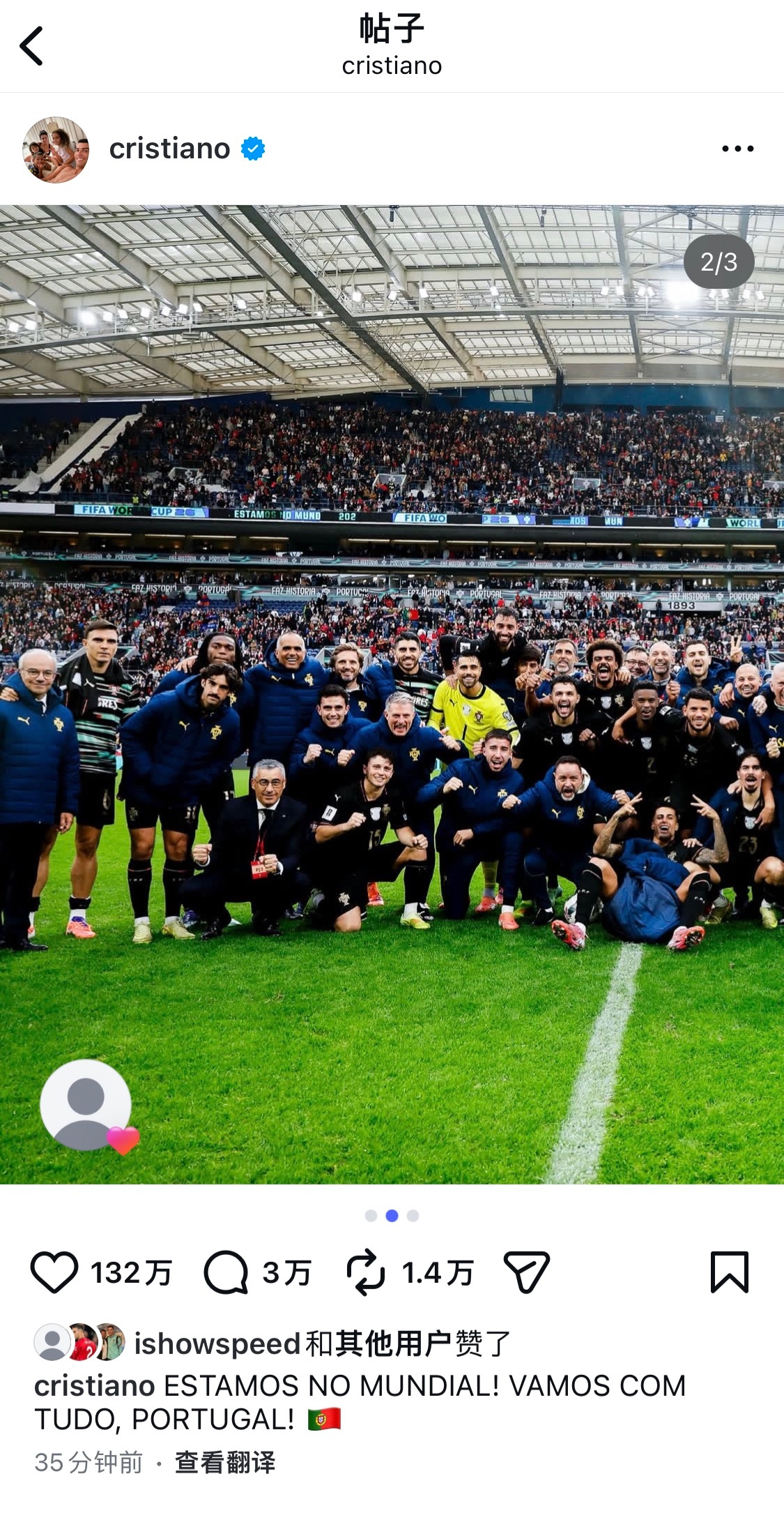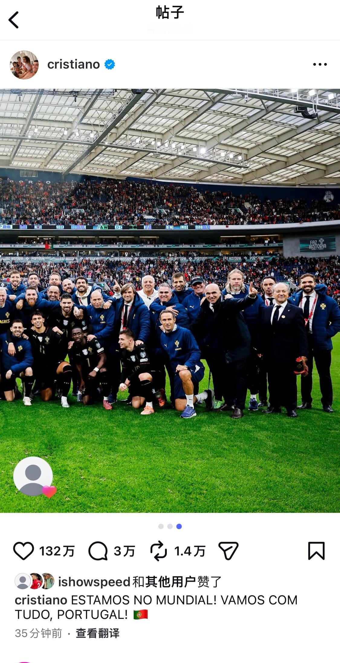 罗的第六次世界杯来了~帖子里还发了今晚比赛的赛后大合照