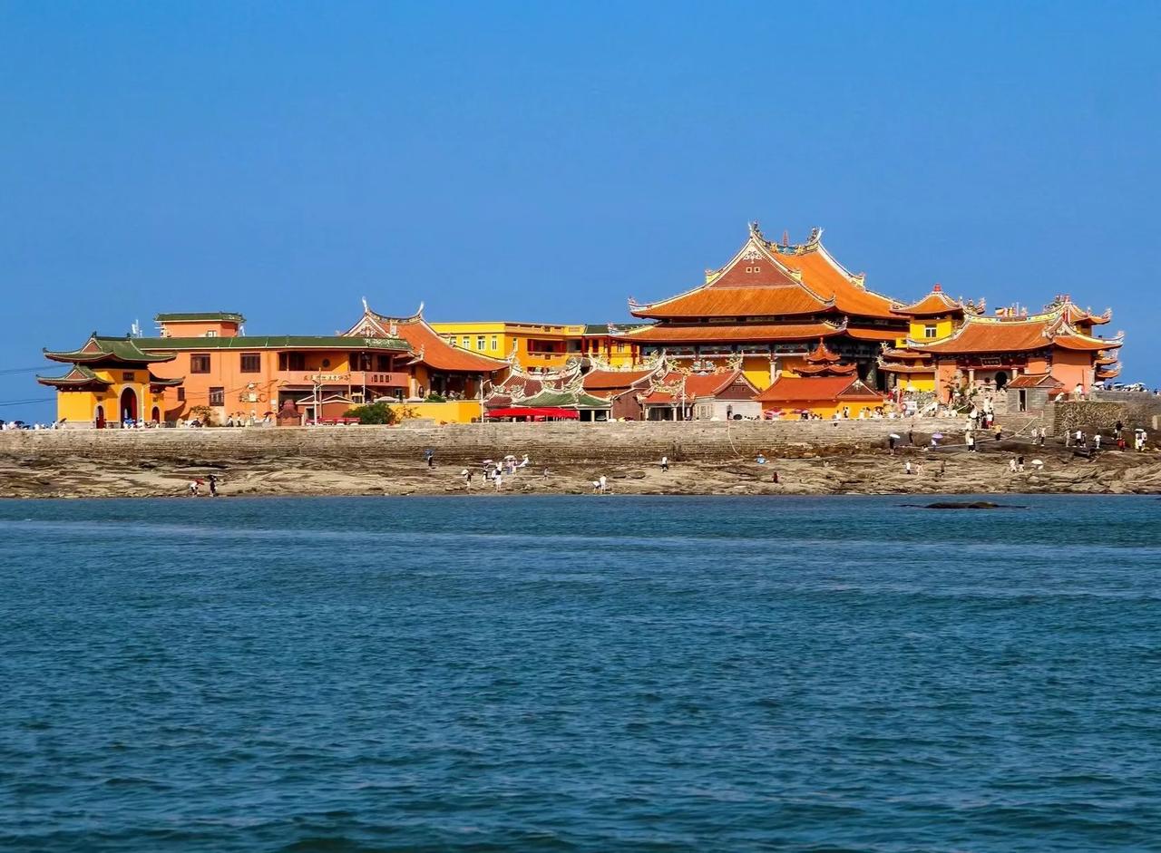 海上现古寺,寺里看大海; 半辰观大海,半辰望天空。
