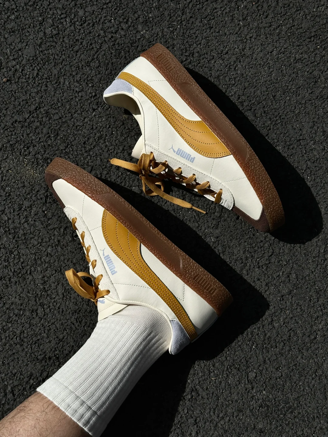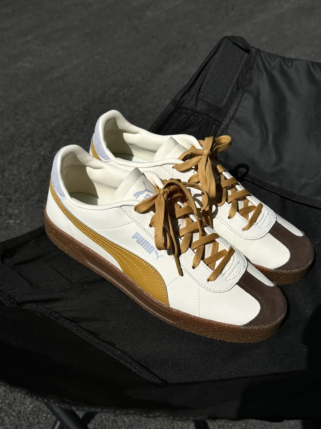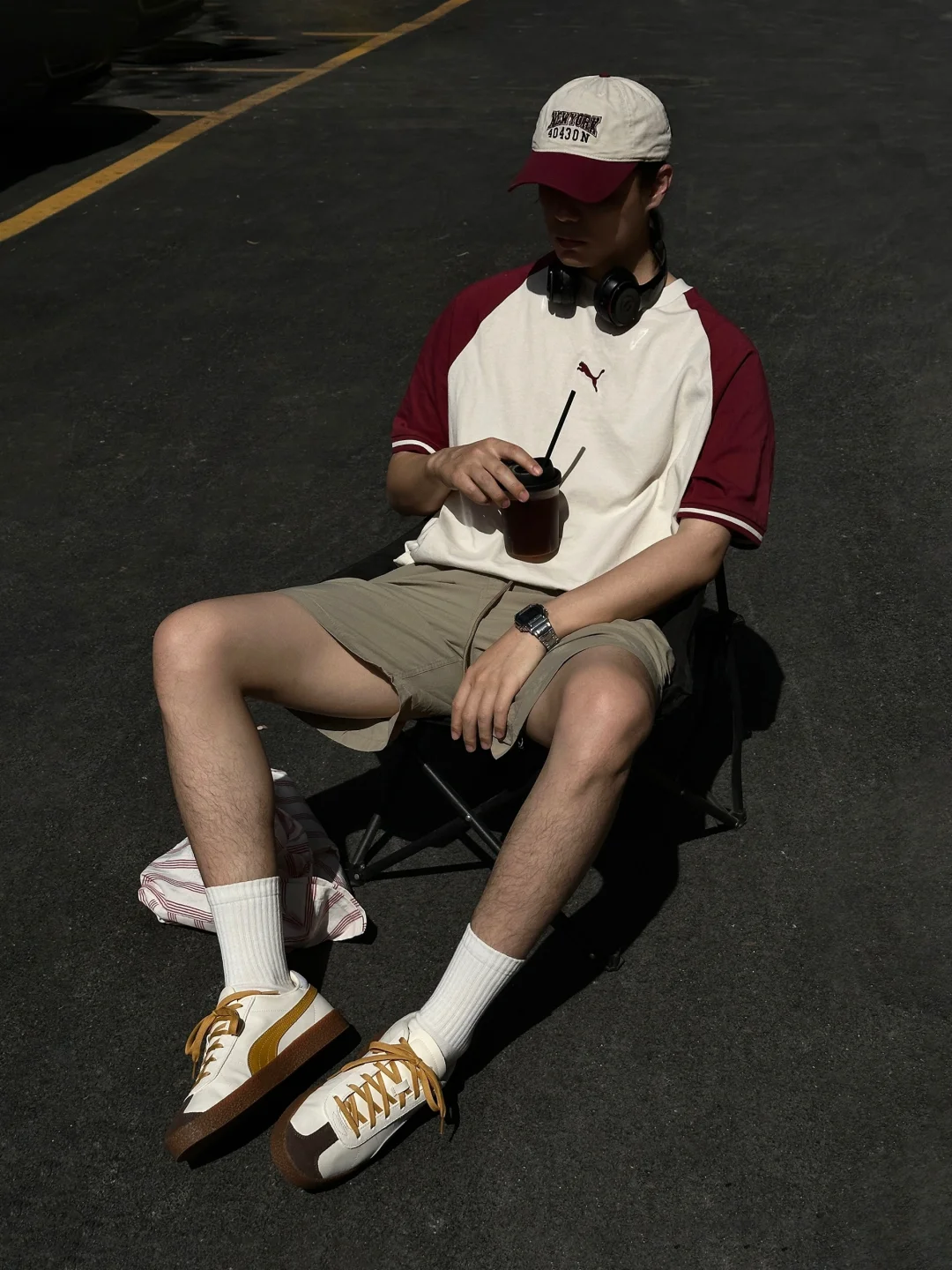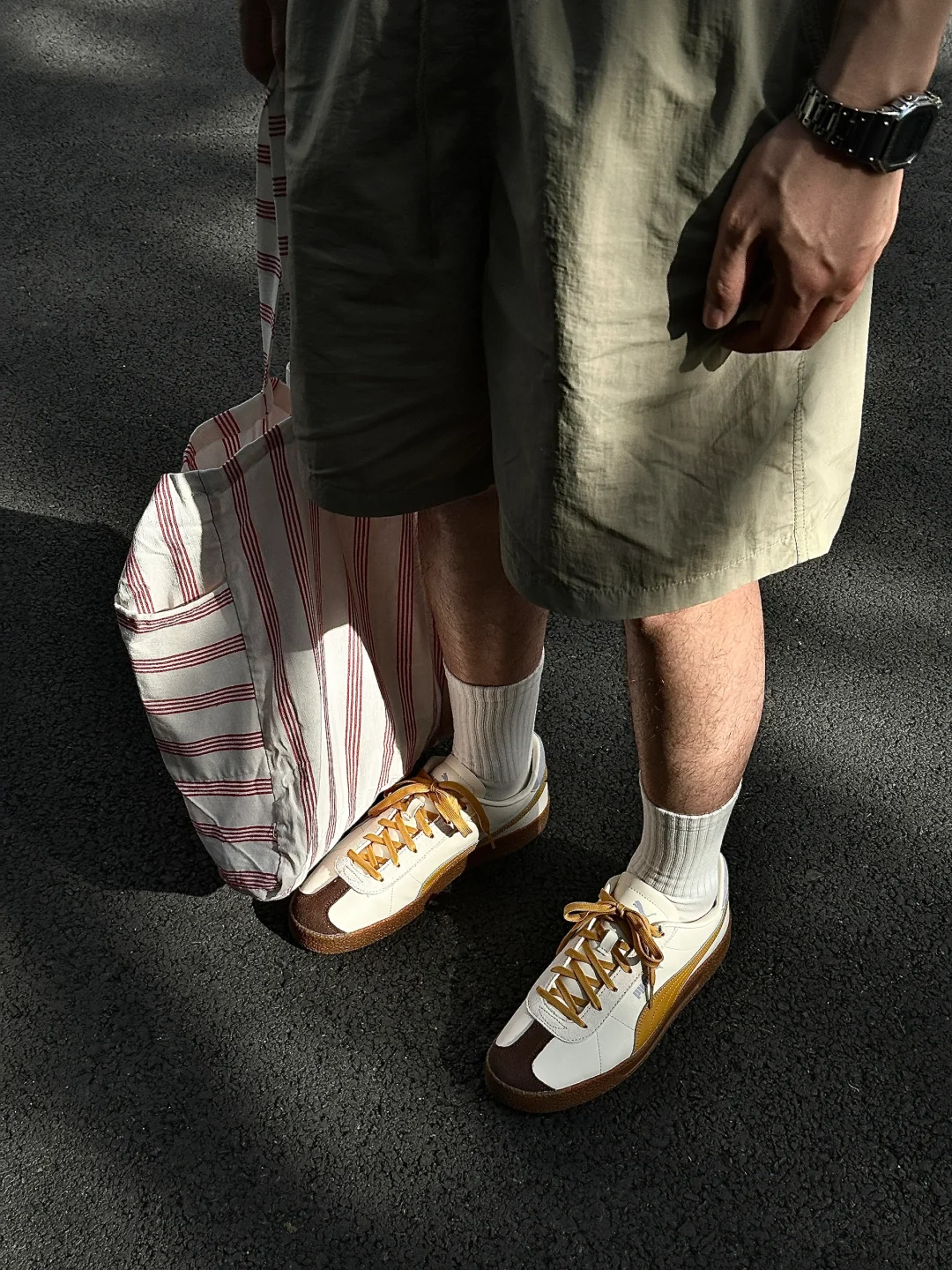 最近是复古回潮了吗 真的会爱这双德训鞋 这不就是预定夏天的配色吗 橙色咖啡跟奶白色的碰撞一整个牛乳吐司配色 满满的复古feel 日常搭配也很好搭 而且脚感还很棒