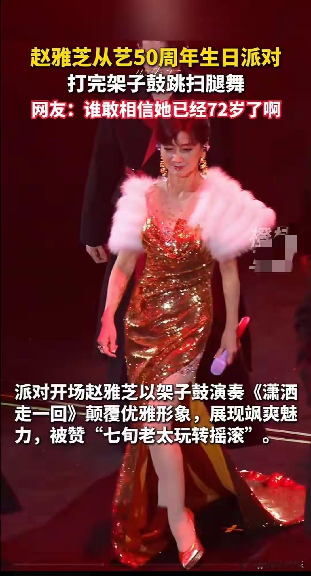 2025年11月15日,杭州奥体中心网球中心“小莲花”场馆内,72岁的赵雅芝以一场颠覆性的从艺50周年时光派对,向世界诠释了何为“优雅永不过时,活力永不褪色”。这场以“芝因有你”为主题的演唱会,不仅是一场音乐盛宴,更是一场关于年龄、艺术与生命力的宣言。当赵雅芝身着银色流苏短裙、头戴镶钻发带,以一曲《潇洒走一回》架子鼓演奏震撼开场时,现场观众瞬间沸腾。她手持鼓槌,节奏精准有力,肢体动作充满力量感,与荧幕上温婉的“白娘子”形象形成强烈反差。网友直呼:“这哪是72岁?分明是27岁的。
