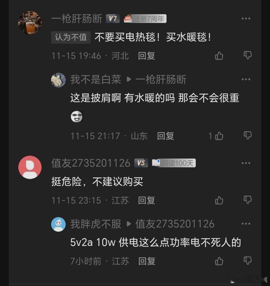 现在的商家真的太聪明了,产品只要稍微改良一下,可能就会衍生一个新品类。今年,电热毯披肩好像真的火起来了,当然也有人觉得它是智商税,还有网友觉得它不太安全。。。看到这些评论,隔着屏幕都能笑出声