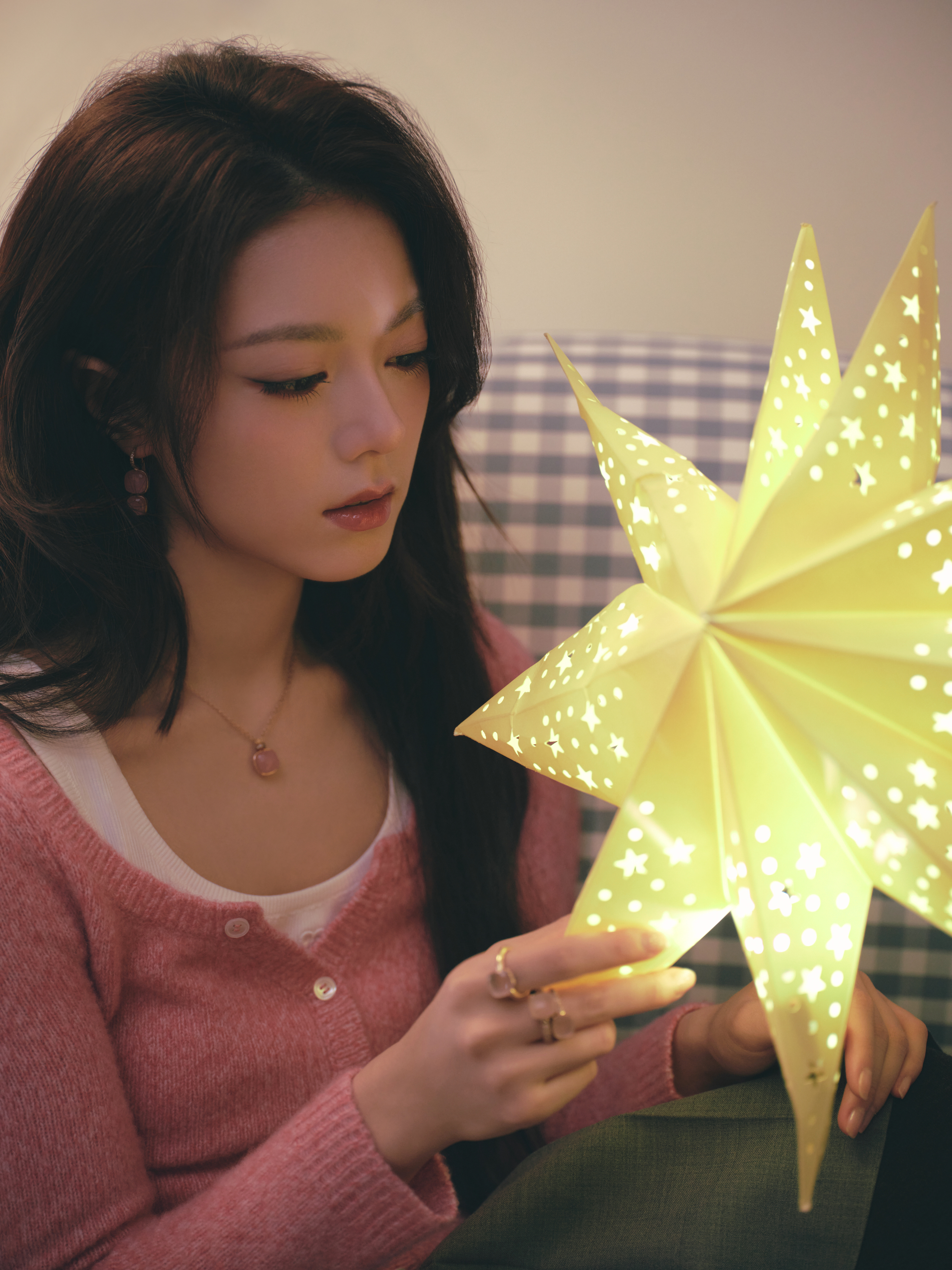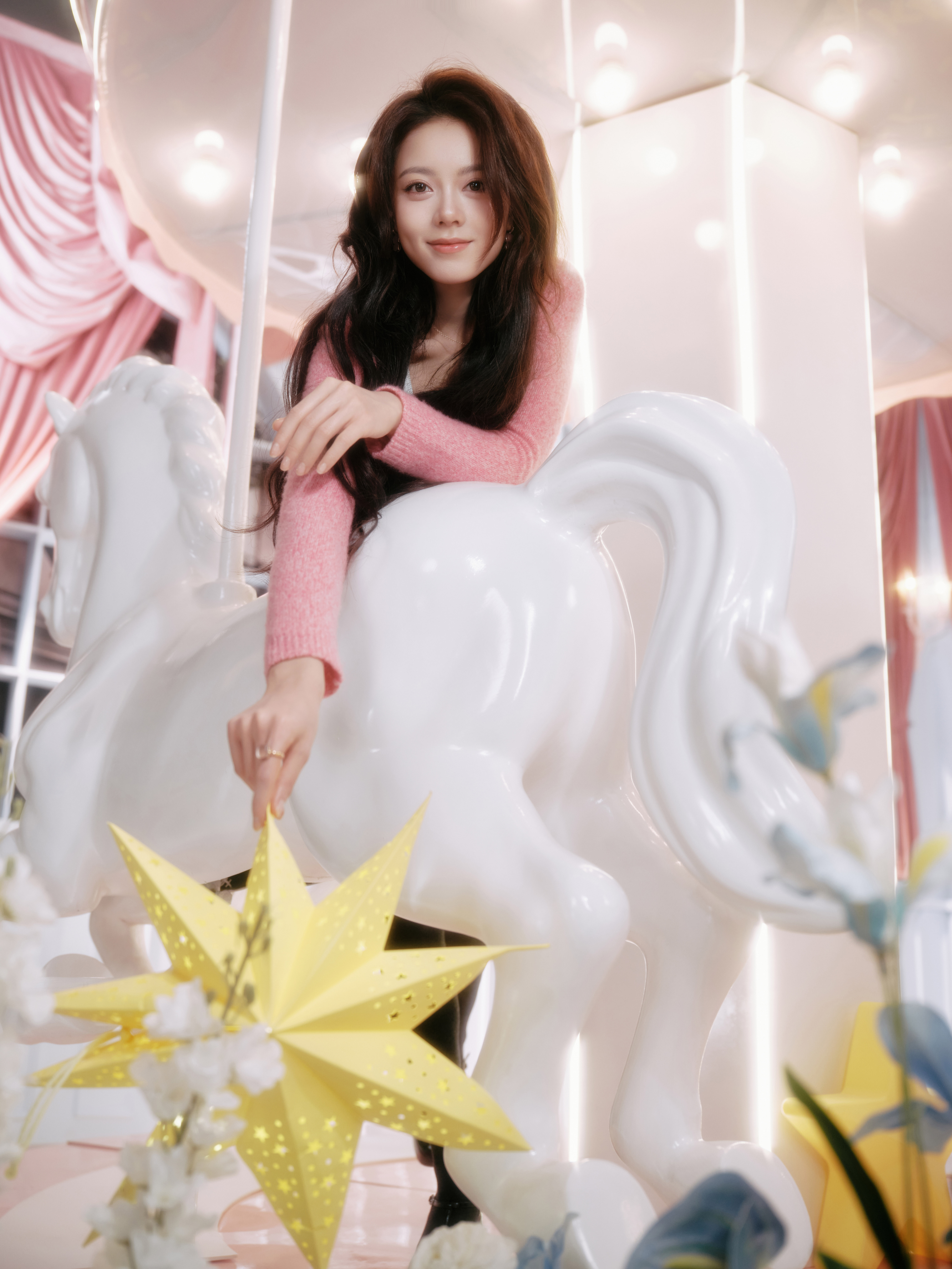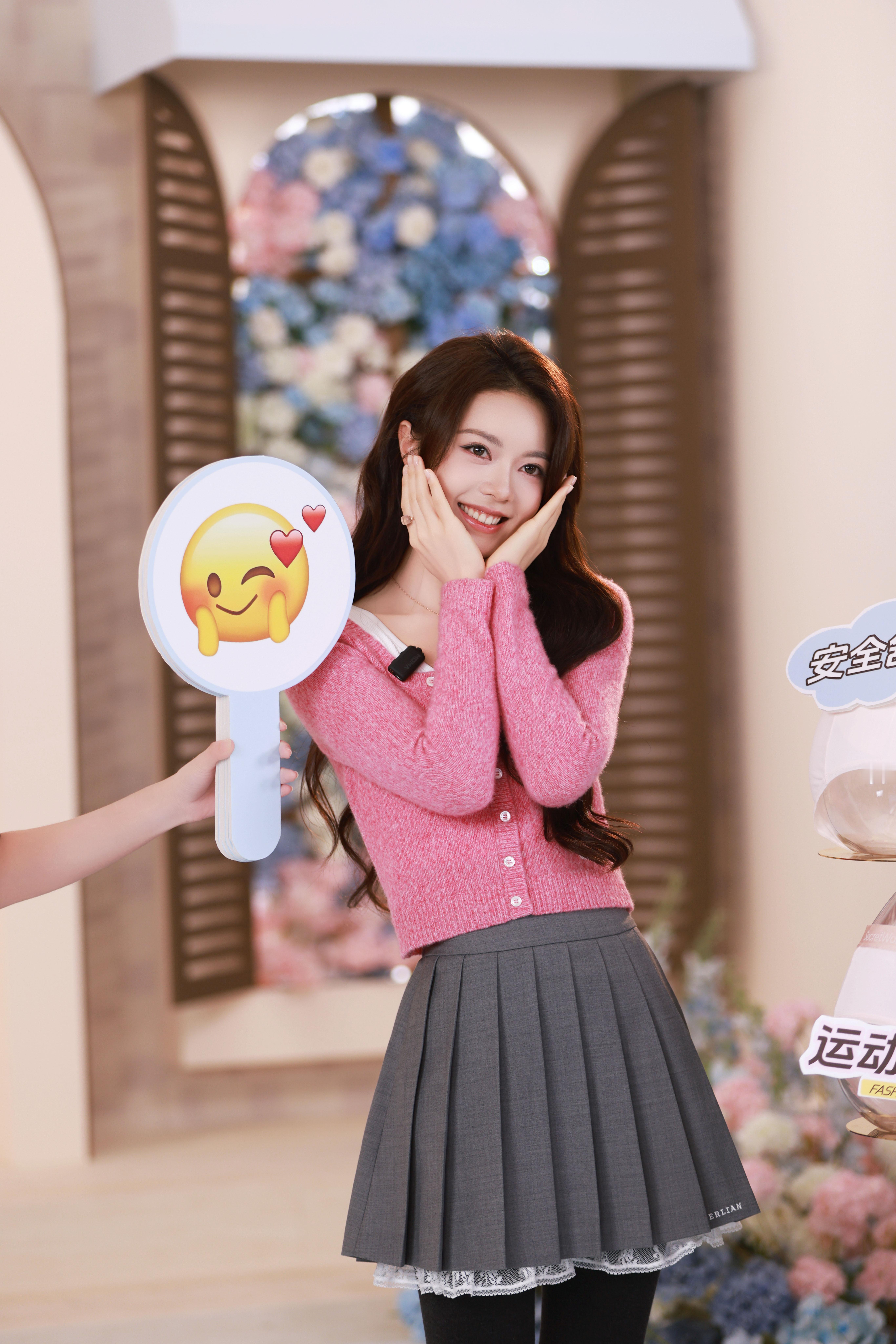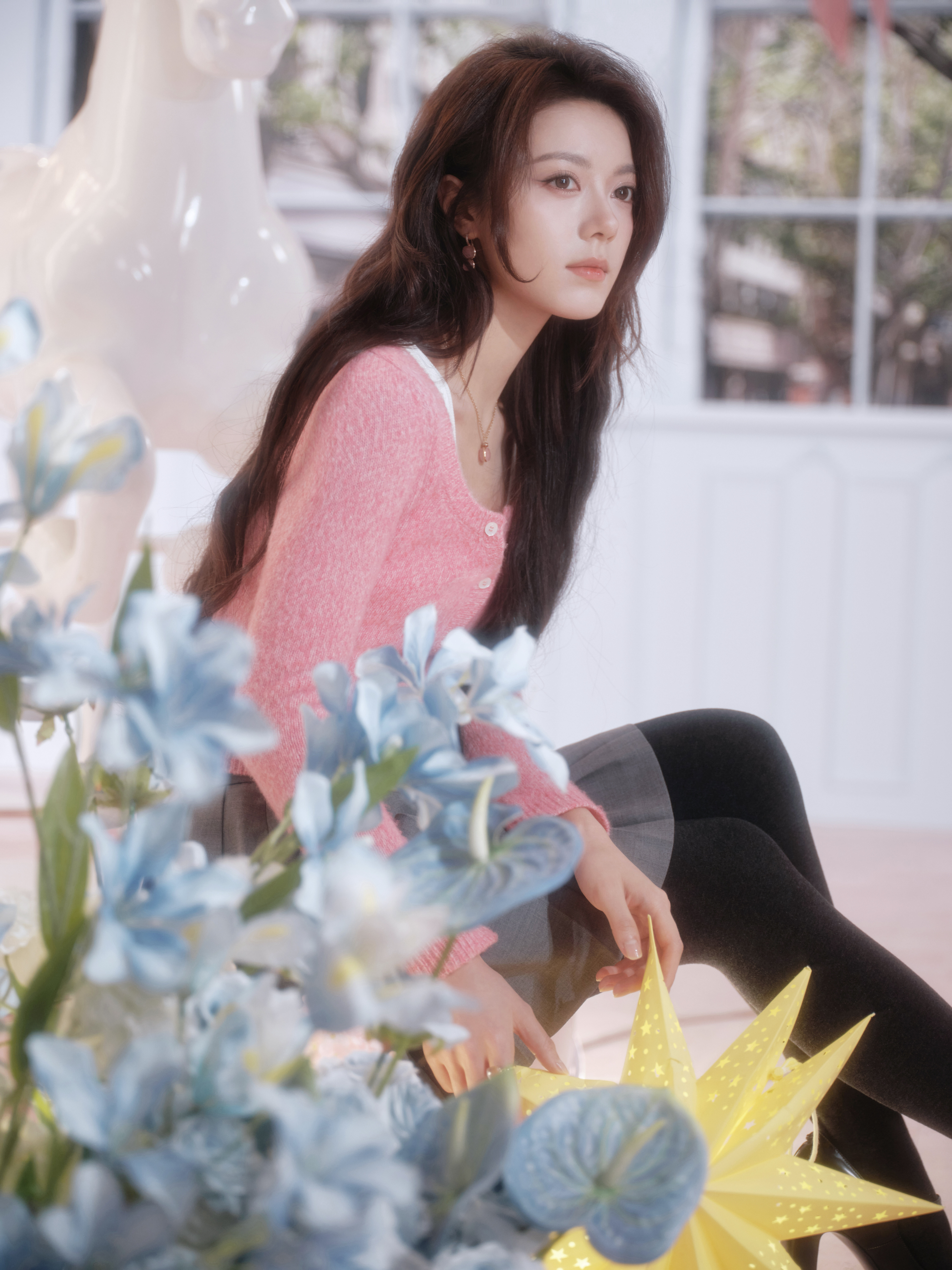 赵今麦 粉色毛衣搭配灰色百褶裙,甜美又不失灵动,黑色袜靴为整体增添精致感,是少女感与优雅并存的穿搭选择。