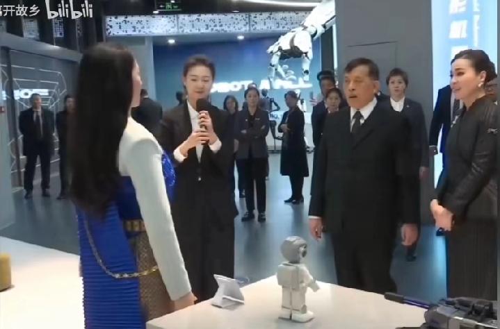 泰王玛哈最爱的女人还是西拉米吧,这北京机器人中心还是挺懂泰王的,那女机器人的脸形和泰王妃西拉米的脸形一模一样啊! 泰王看到后目不转睛地盯着,旁边的苏提达是不是有点尴尬啊!不过她并没有任何不悦,仍然保持微笑端庄的样子在旁边陪着。
