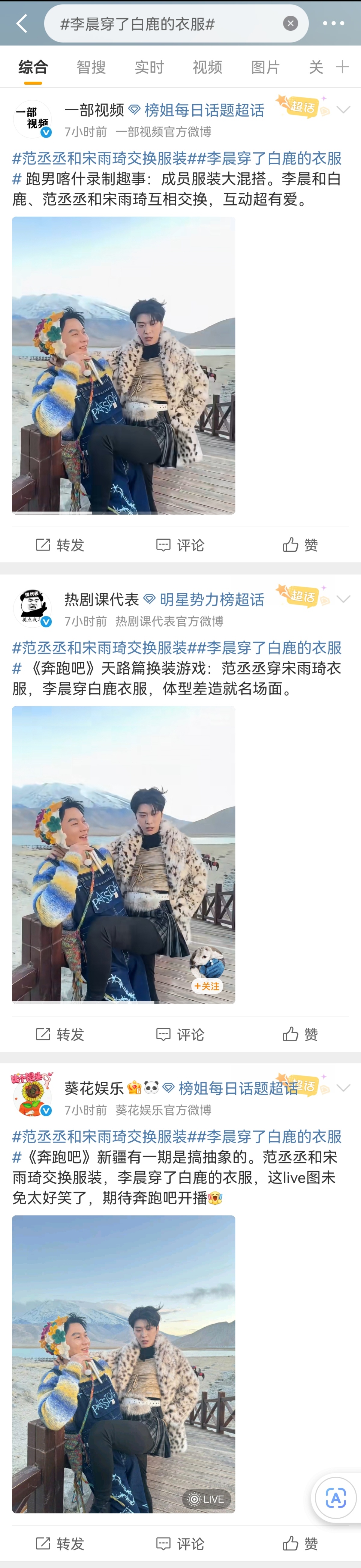 期待本周六20点20播出的奔跑吧天路篇。电子榨菜白鹿白梦妍要来了。