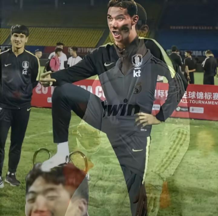 不知道谁这么有才,P了这张图,虽然有些模糊,但颇有深意。 韩国足球的高傲确实令人发指,大家都还深深的记得韩国人无视熊猫杯,将奖杯踩在脚下的场景,如今新生代国青狠狠的将韩国人踩在脚下,看着拜合拉木那得意洋洋的样子,确实让人解气,从此韩国人不敢在小看中国足球,因为正如图所指,对待韩国足球就需要这个样子。 拜合拉木,好样的,继续努力!