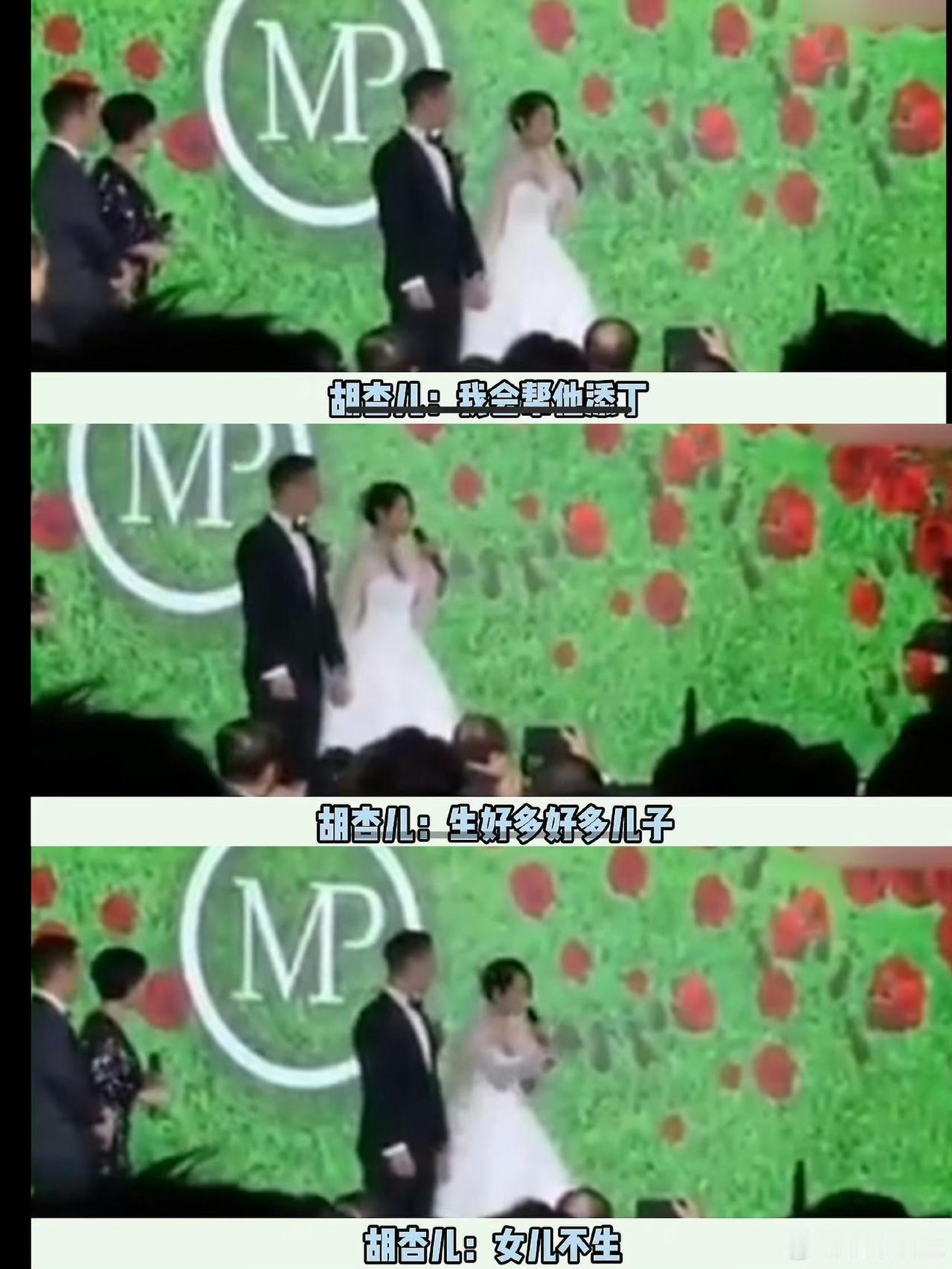 考古胡杏儿婚礼发言笑出眼泪!当年这话现在看太敢说 谁考古胡杏儿黄宗泽旧恋时,没被胡杏儿婚礼发言惊到啊!当年她竟当众说“只生儿子不生女儿”,台下长辈笑得合不拢嘴,可搁现在看弹幕,全是吐槽声,毕竟公众人物这话确实有点不妥~ 想想当年她和黄宗泽的爱恨纠葛够抓马,婚礼上这波发言又添了份“时代印记”,虽知道大概率是玩笑话,但放在当下语境,确实显得有些不合时宜,也难怪网友忍不住吐槽,只能说时代变了,审美和观念也跟着更新啦!