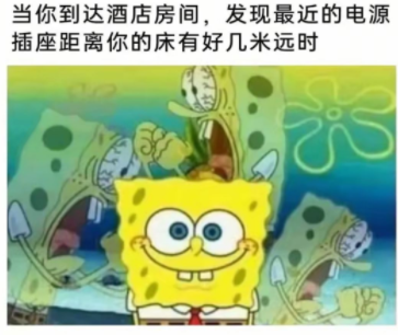 当你到达酒店房间,发现最近的电源插座距离你的床有好几米远时