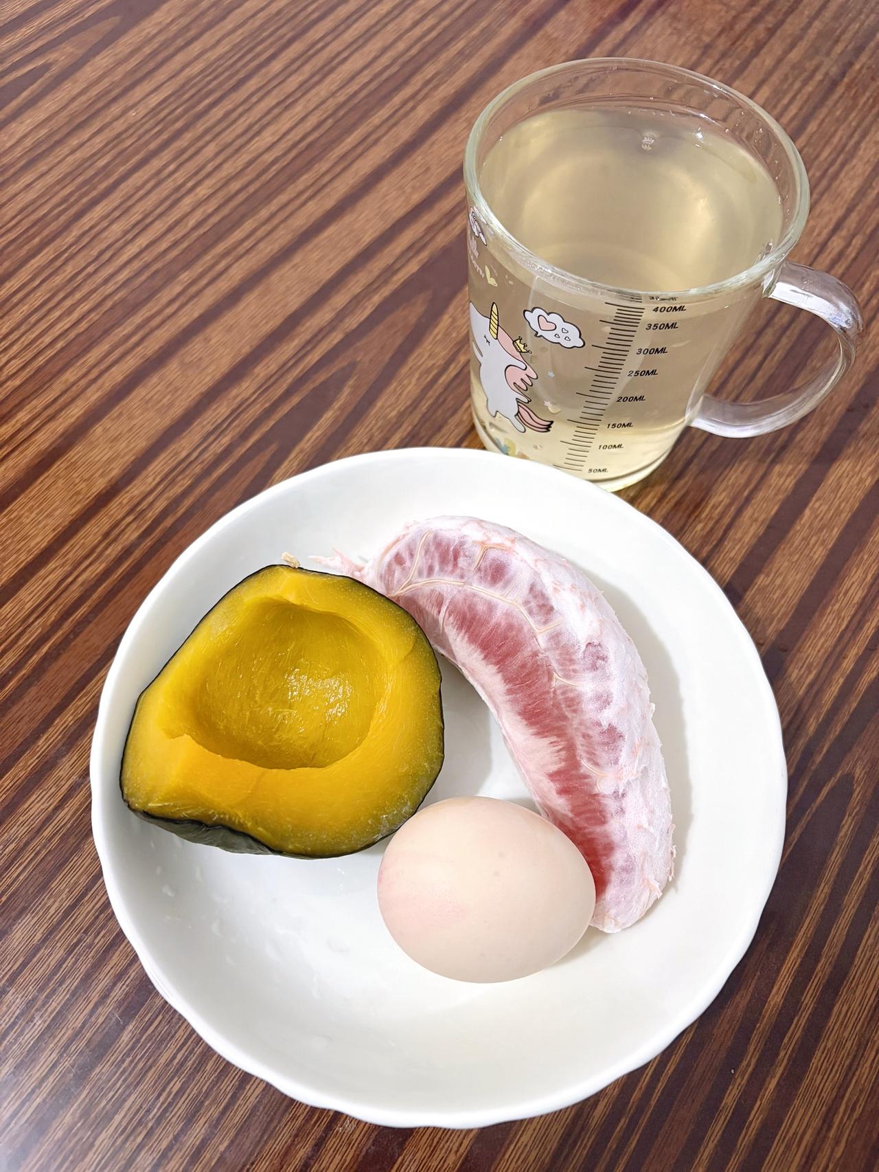 大餐后第一天的体重:112.7斤上2.8斤 今日早餐:鸡蛋+南瓜+柚子+薏仁水
