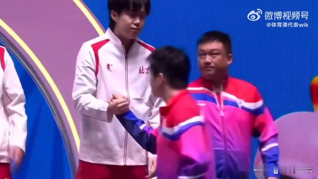 有谁注意到:颁奖仪式上,樊振东做了一个特别的举动! 如果大家仔细观察,几乎全运会所有的颁奖仪式,冠亚季军被主持人报到名字后,都会直接站上领奖台。 但是唯独樊振东,他并没有,他绕到前面,和王楚钦和林诗栋,以及他们他们教练一一握手,然后再走回自己的位置,站上领奖台。 小胖的这一举动,给了队友足够的尊重,他的仪式感,给国乒带来了体面[赞] [赞]