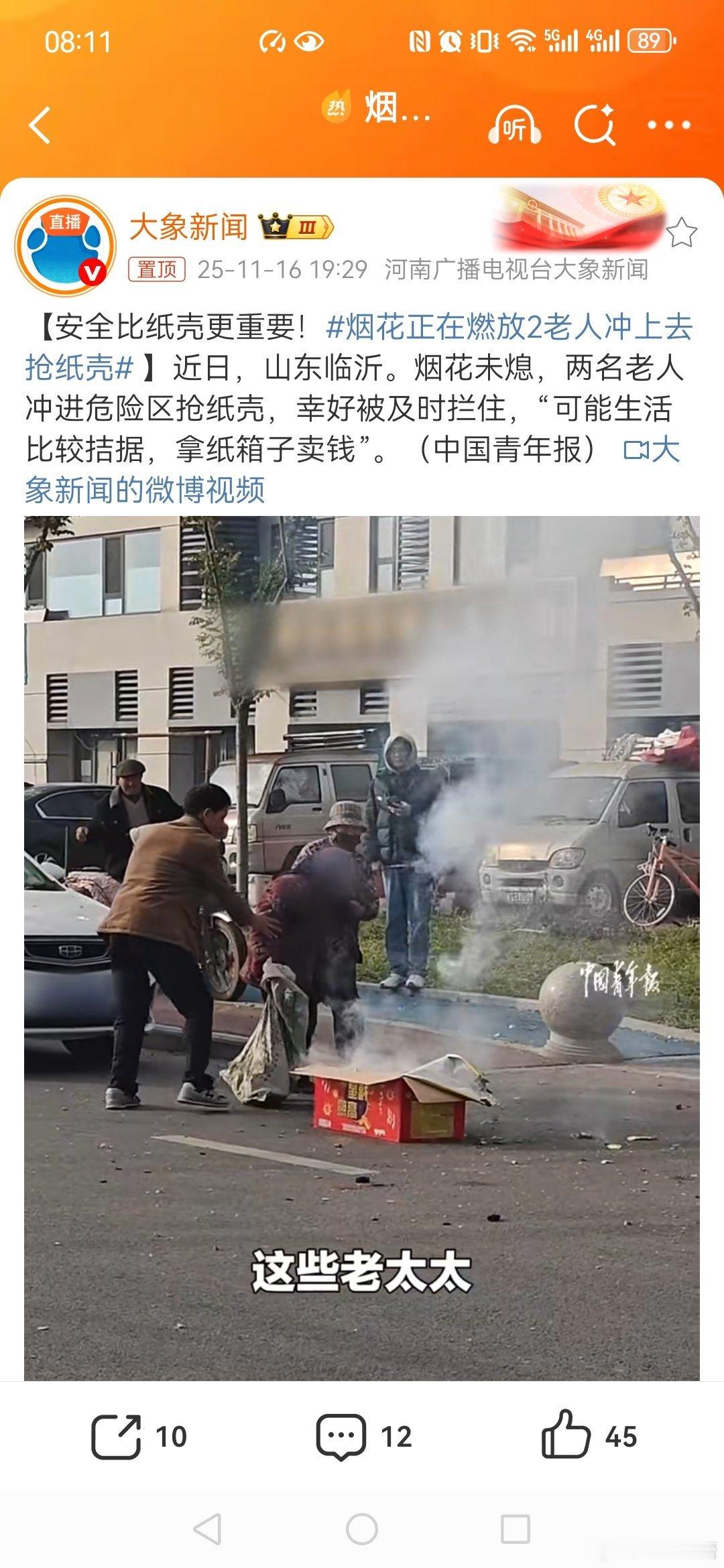 她们不但缺钱,而且缺乏安全意识,人人都富有谁去捡,都是没有办法,不过还没放完的最好有人看着, 命都不要了,出了安全事故了主家是不是要承担责任呢?多危险啊,这样纸箱好多废品站不敢要,里面怕还有火药。 朱门酒肉臭,路有冻死骨!别怪穷人贪,是她真没没钱!爆竹有危险,生活更艰难!