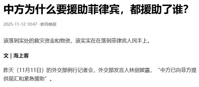 菲律宾方面宣布:中国在2025年11月11日向菲律宾提供约1.41亿比索的援助,其中包括约100万美元现金和价值1000万元人民币的物资。网友:喂不熟的狼,为什么还要救助菲律宾! 大家有这想法太正常了,毕竟中国对菲律宾的好,早不是一次两次的临时起意,而是十几年如一日的掏心掏肺,可换来的回应里,总掺着些让人膈应的算计。 就说2025年11月这1.41亿比索援助,折合成人民币不到1700万,看着不多,但细算下来全是民生急需的真金白银——100万美元现金能直接补灾区缺口,1000万元人民币的物资里光是帐篷、净水设备就占了大半。 可谁忘了就在几个月前,台风“海鸥”刚卷过菲律宾时,中国还在评估援助方案,菲方就已经忙着把中国早年援助的钢材往中业岛运,用来加固军事设施了。 往前数,2013年“海燕”台风把菲律宾莱特岛刮成一片废墟,几千人埋在瓦砾里,通讯全断的时候,中国是第一个把援助送上门的。24小时内凑齐200万美元现金和1万吨大米,要知道那时候国际粮价正涨,1万吨大米够灾区几十万人吃一个月。 最实在的是“和平方舟”医院船,直接开到塔克洛班港停了半个月,船上的医生每天做几十台手术,从断肢再植到急腹症抢救样样都来,光是登记在册的救治人数就超过两千人。 这待遇连美国的“仪式性援助”都比不了——当时美军送来的矿泉水和压缩饼干,根本解不了灾区缺抗生素、缺发电机的燃眉之急。 到了2021年,先是新冠疫情扑得菲律宾措手不及,医疗系统濒临崩溃,中国二话不说调了60万剂科兴疫苗,用运-20专机送过去,杜特尔特带着一群军政要员亲自去机场接,说这是“菲中友谊的里程碑”。 结果下半年“雷伊”台风又来捣乱,中国立马补了400万美元的物资,帐篷堆得像小山,连灾后重建用的工程机械都备齐了。 可就在同一年,菲律宾一边拿着中国的疫苗给民众接种,一边把省下来的防疫预算挪去买美国的二手巡逻艇,转头就开去南海挑事。 最让人看不懂的是基建上的操作。2021年中国企业和菲律宾签了苏比克-克拉克铁路项目,9.4亿美元的投资几乎全是中方融资,这条71公里的铁路能把苏比克湾港口和克拉克机场连起来,光货运就能给菲律宾每年省几亿物流成本,算是菲“大建特建”计划里的旗舰项目。 结果小马科斯一上台,菲律宾突然取消贷款申请,等中国无奈退出后,转头就找美国和日本要资金,把这条本该惠民的铁路变成了拉拢域外势力的筹码,62亿元人民币的项目说换主就换主,半点不念当初中方帮他们做前期勘探的情分。 菲律宾的算盘打得隔着南海都能听见响:中国的援助要接,因为能省出真金白银搞民生,腾出来的钱正好买美国武器;美国的大腿要抱,因为能借着军事同盟给中国施压,好在南海多占点便宜。 2024年这波操作最明显,2月到4月短短两个月里,菲律宾渔业局的船三次非法闯黄岩岛,3月还派船故意冲撞中国海警艇,甚至往仁爱礁“坐滩”的破军舰上送建筑材料想加固。 可就在同个4月,美菲搞“萨拉克尼布-24”军演,美国把能打上千公里的“堤丰”导弹系统都部署到了吕宋岛,菲律宾军方还高调宣布要建“海上民兵”,转头就忘了前一年中国刚给他们送过救灾的工程机械。 而讽刺的是援助和军事投入的对比,这些年中国给菲律宾的援助加起来早超过3亿美元,光疫情期间就捐了疫苗、口罩、呼吸机三大类物资,中资企业还帮他们建了口罩厂。 可菲律宾2024年的国防预算里,光采购美国武器就花了12亿美元,比前一年涨了近三成,买的全是适合南海冲突的巡逻艇和防空导弹。 一边拿着中国的大米喂饱民众,一边用美国的导弹瞄准邻国,这种“两头通吃”的套路玩得熟练,却忘了国际援助从来不是无条件的施舍。 2025年这次援助公布前,台风“海鸥”刚让菲律宾百余人遇难、190万人被困,国际社会里只有美国给了100万美元,这点钱连修座临时桥梁都不够。 中国还是按老规矩备齐了现金和物资,甚至让地方省份通过友省渠道追加援助,可菲律宾媒体提都不提这些,反而大篇幅报道美菲即将举行的联合军演。 这种反差就像你天天给邻居送吃的,邻居转头就把你家篱笆拆了,还喊外人来家门口摆桌子,换谁都会觉得“喂不熟”。 说到底,中国的援助从来是看在菲律宾普通民众的份上,是人道主义的基本盘,可菲律宾当局却把这份善意当成了可以反复透支的信用卡。 一边靠中国的物资填民生窟窿,一边靠美国的军事支持在南海碰瓷,以为能左右逢源,其实早把自己的信用度败光了。 就像苏比克-克拉克铁路,中国退出后美日只给承诺不给真金白银,最后耽误的还是菲律宾自己的发展。 南海挑事闹得凶,可渔民的渔获没多一斤,反而因为局势紧张丢了不少合作订单。 这哪是捡芝麻丢西瓜,分明是捧着金饭碗去要饭,最后还嫌碗不够亮。