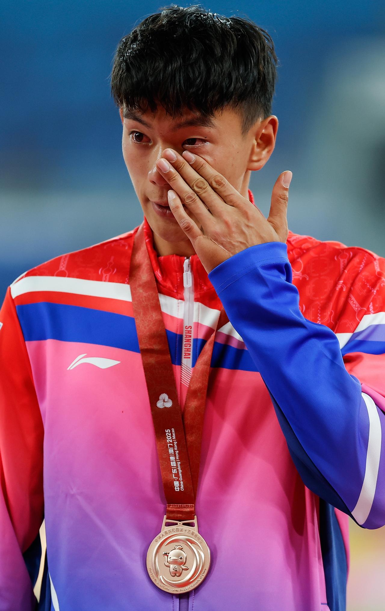 随着最后一项1500米比赛结束,第十五届全运会男子十项全能最终名次,前不久刚刚参加世锦赛的上海名将费翔仅获得第三名,在颁奖仪式上遗憾落泪,浙江选手华梓惠和山东选手张文熙分获冠亚军。