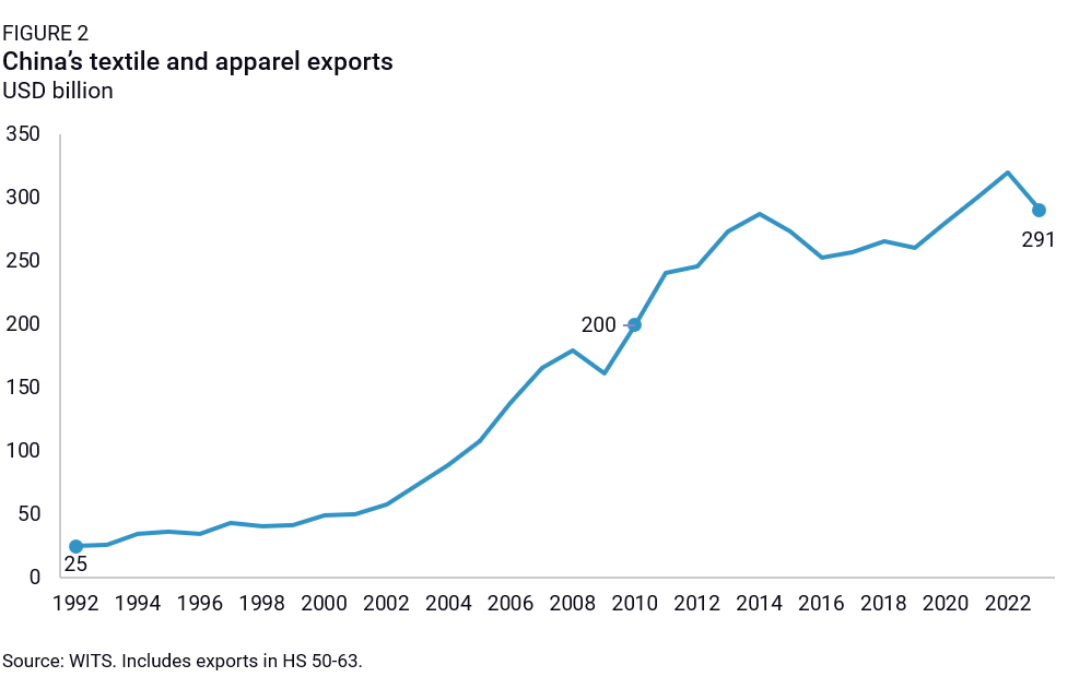 中国的工业化,服装行业是一条重要的向上通道。从2000年代初开始。中国纺织品