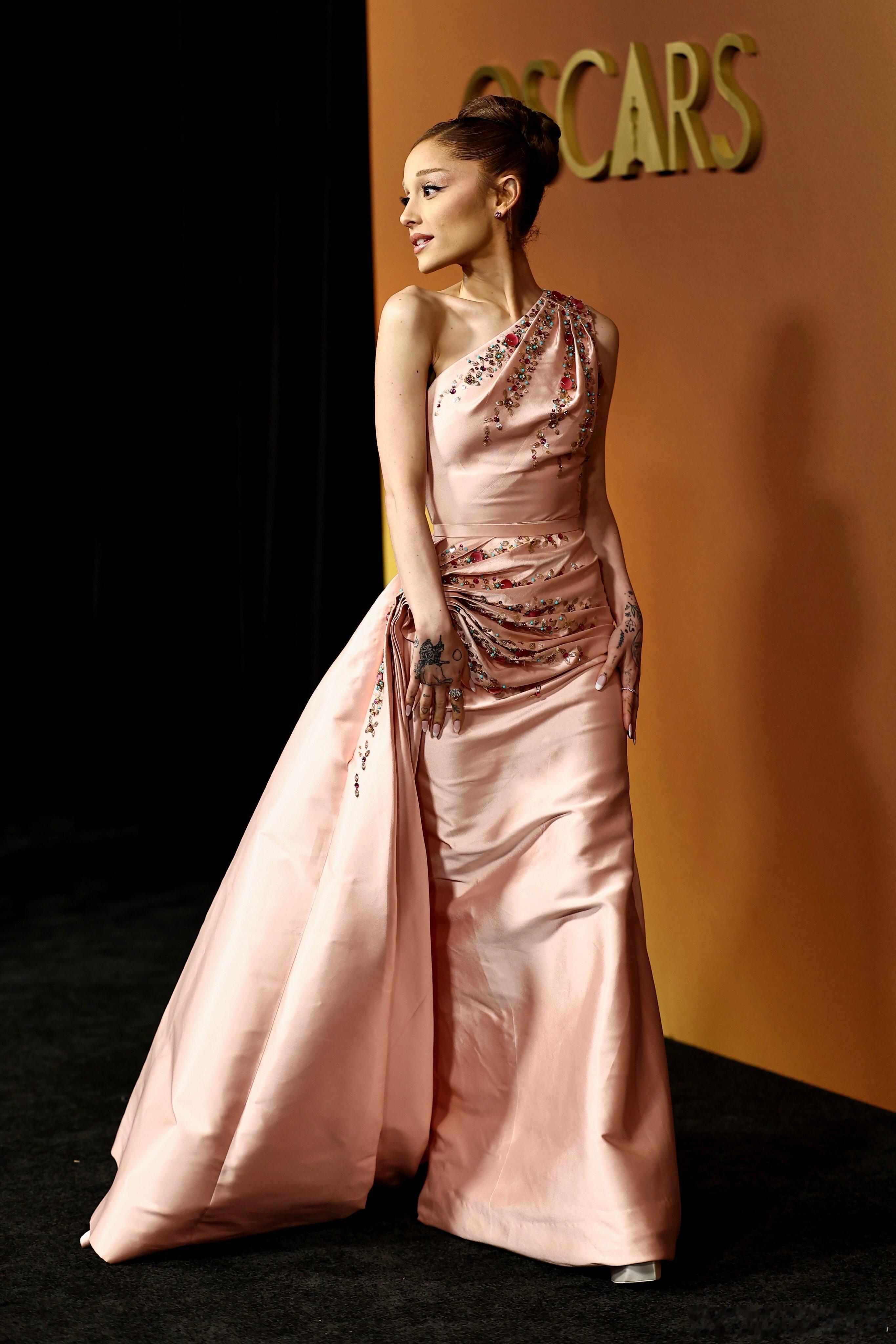 A妹奥斯卡理事会奖红毯这套是Dior 2007秋冬系列古董礼服,粉色还挺衬她的。