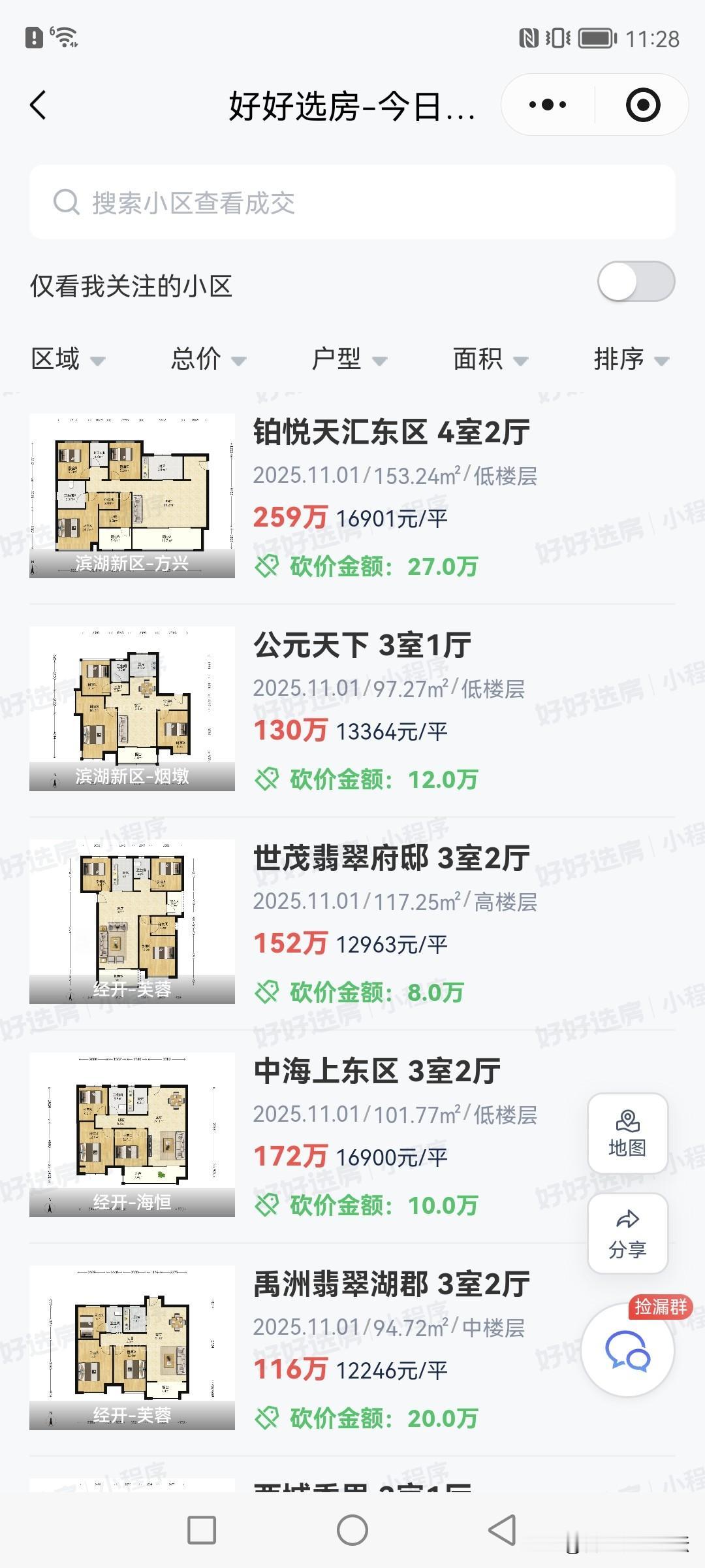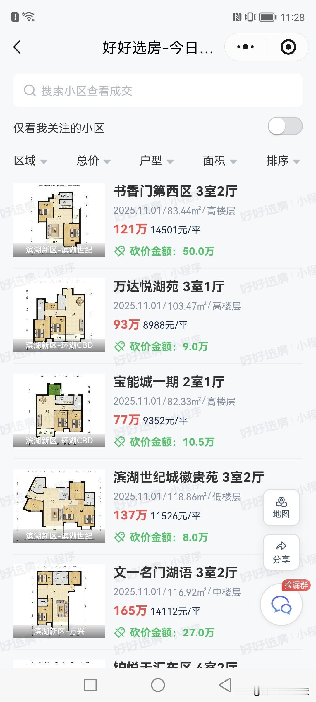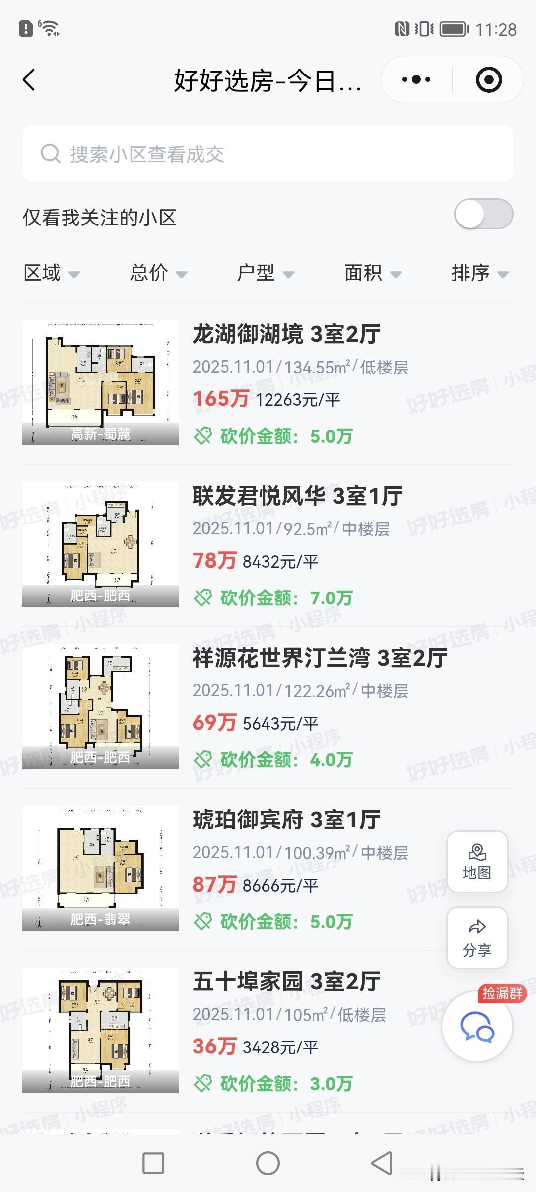 进入十一月份,合肥二手房部分成交的情况。还是西南边的二手房好卖,也是低总价的多,现在很多洋房也便宜了。 二手房选择面很广泛,最近还有挂的次新房也多,很多一天没住的,刚交房的。